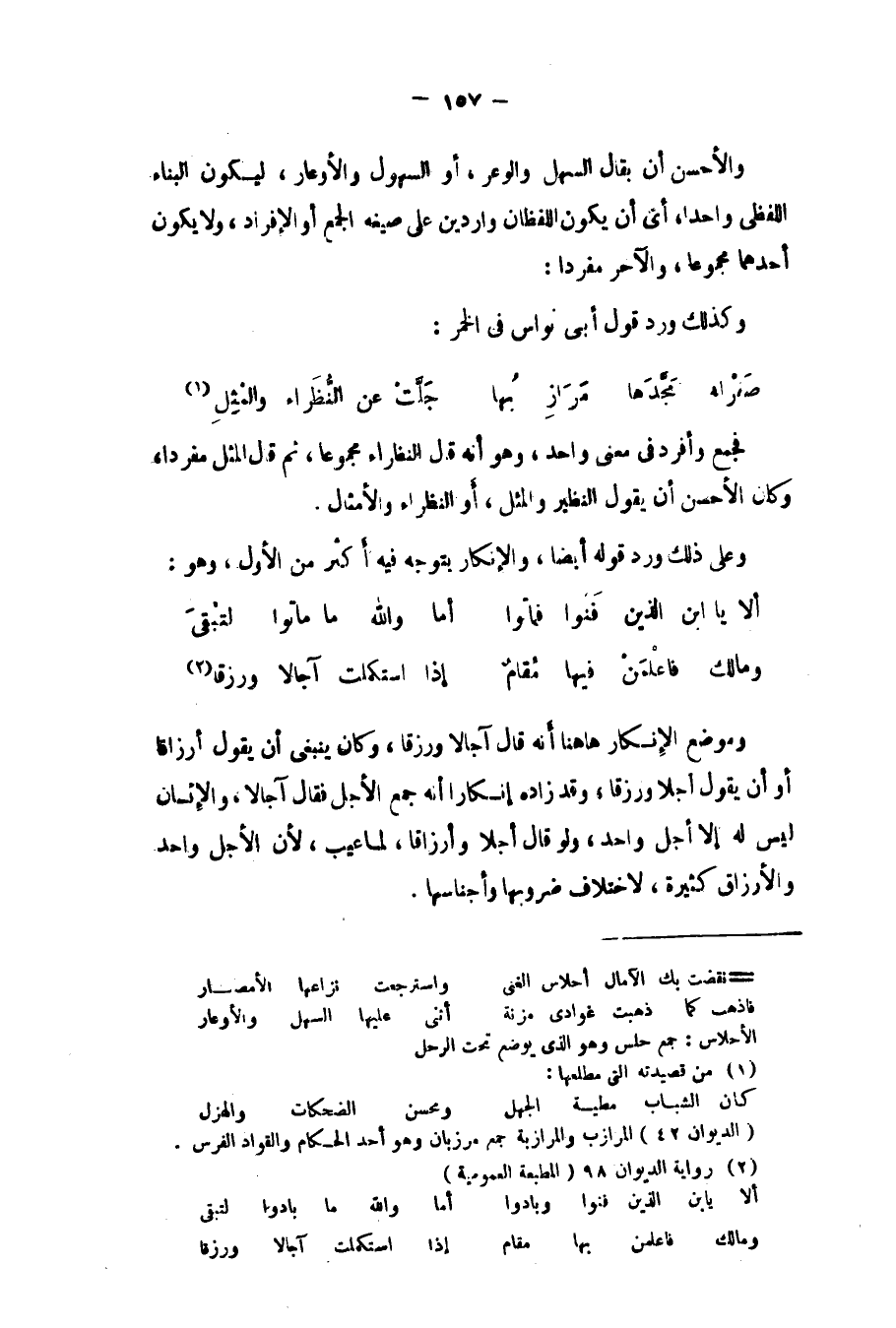 وموضع الإنكار ههنا أنه قال: آجالا ورزقا, وكان ينبغي أن يقول: أرزاقا، أو أن يقول: آجلا ورزقا، وقد زاده إنكارا أنه جمع الأجل فقال: آجالا, والإنسان ليس له إلا أجل واحد، ولو قال أجلا وأرزاقا, لما عيب؛ لأن الأجل واحد والأرزاق كثيرة، لاختلاف ضروبها وأجناسها.