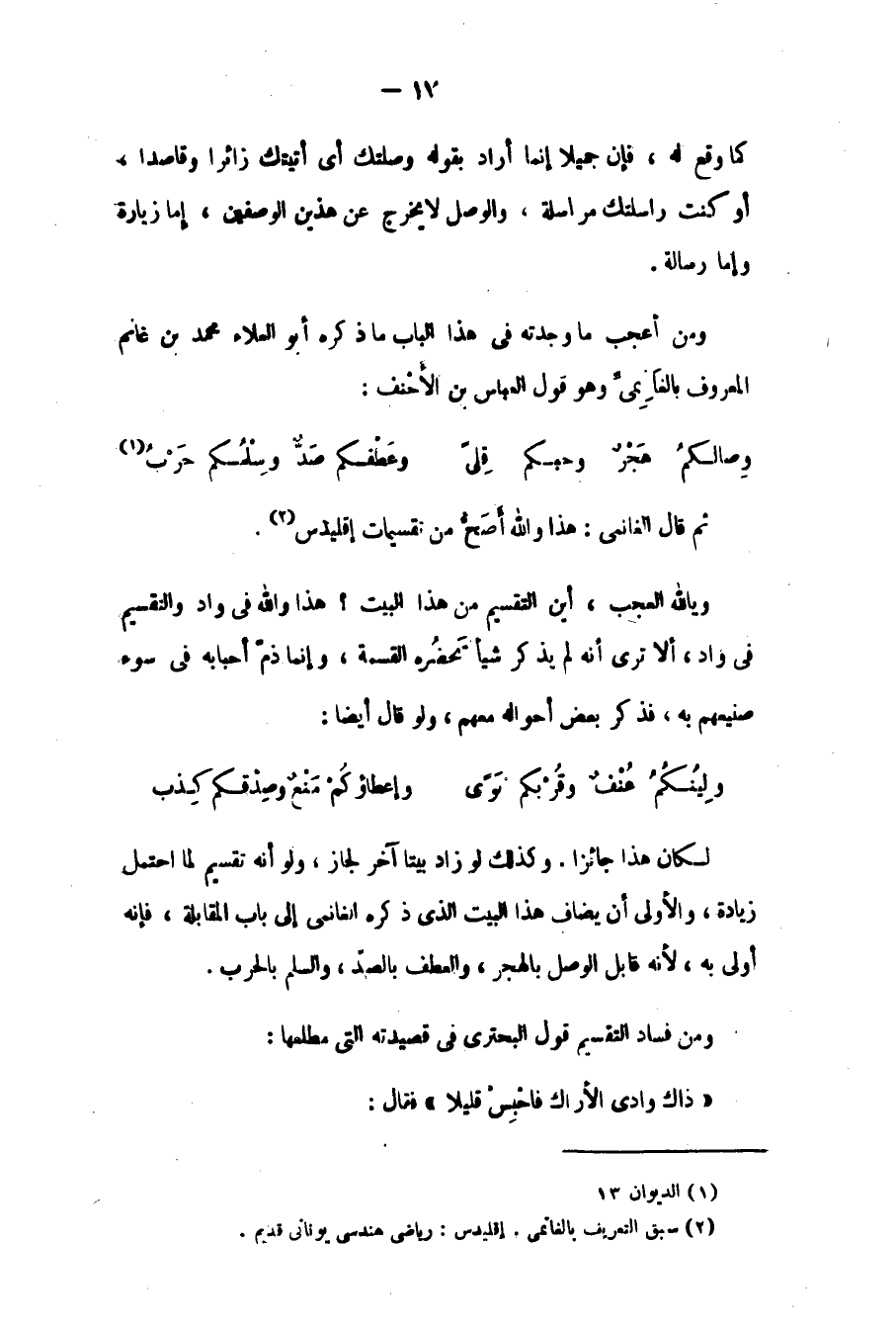ومن أعجب ما وجدته في هذا الباب ما ذكره أبو العلاء محمد بن غانم المعروف بالغانمي هو قول العباس بن الأحنف: