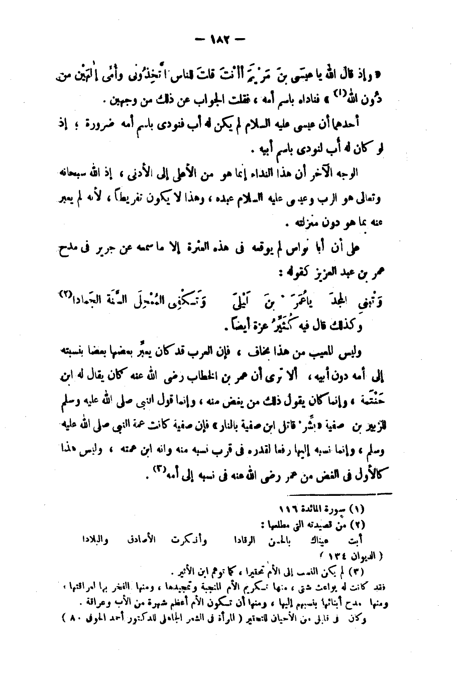 {إِذْ قَالَ اللَّهُ يَا عِيسَى ابْنَ مَرْيَمَ أَأَنْتَ قُلْتَ لِلنَّاسِ اتَّخِذُونِي وَأُمِّيَ إِلَهَيْنِ مِنْ دُونِ اللَّهِ} 1 فناداه باسم أمه, قلت الجواب عن ذلك من وجهين: