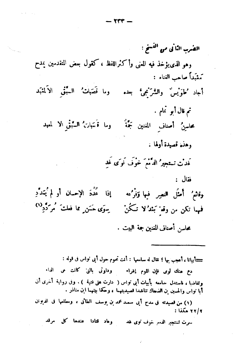 وهو الذي يؤخذ فيه المعنى وأكثر اللفظ، كقول بعض المتقدمين يمدح معبدا صاحب الغناء: