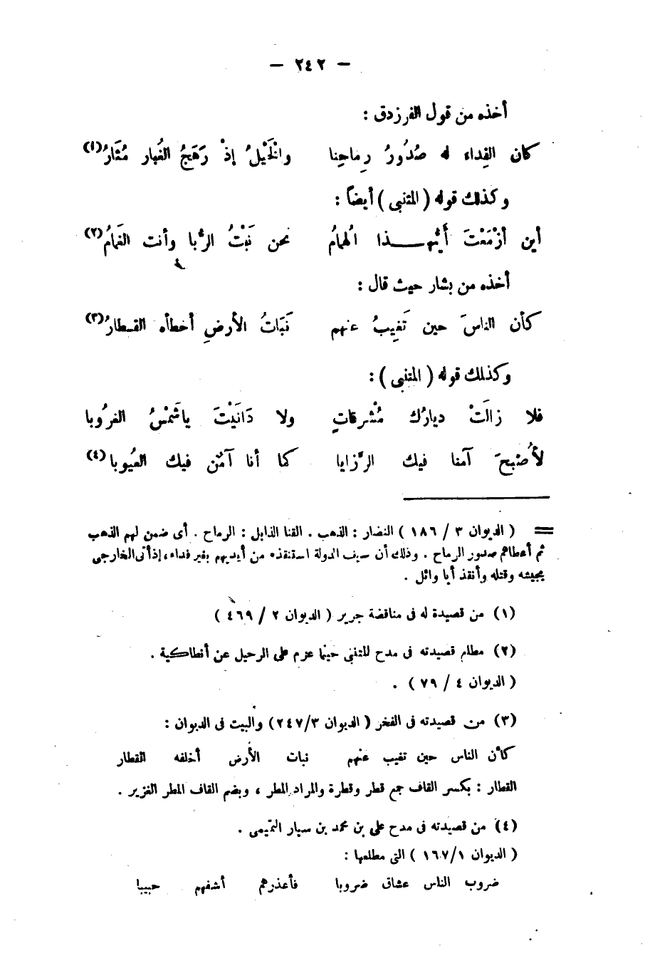 2 مطلع قصيدته في مدح المتنبي حينما عزم على الرحيل عن أنطاكية. "الديوان 4/ 79".