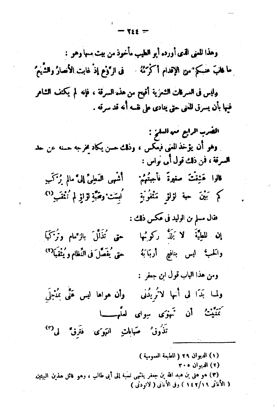 وليس في السرقات الشعرية أقبح من هذه السرقة، فإنه لم يكتف الشاعر فيها بأن يسرق المعنى حتى ينادي على نفسه أنه قد سرقه.