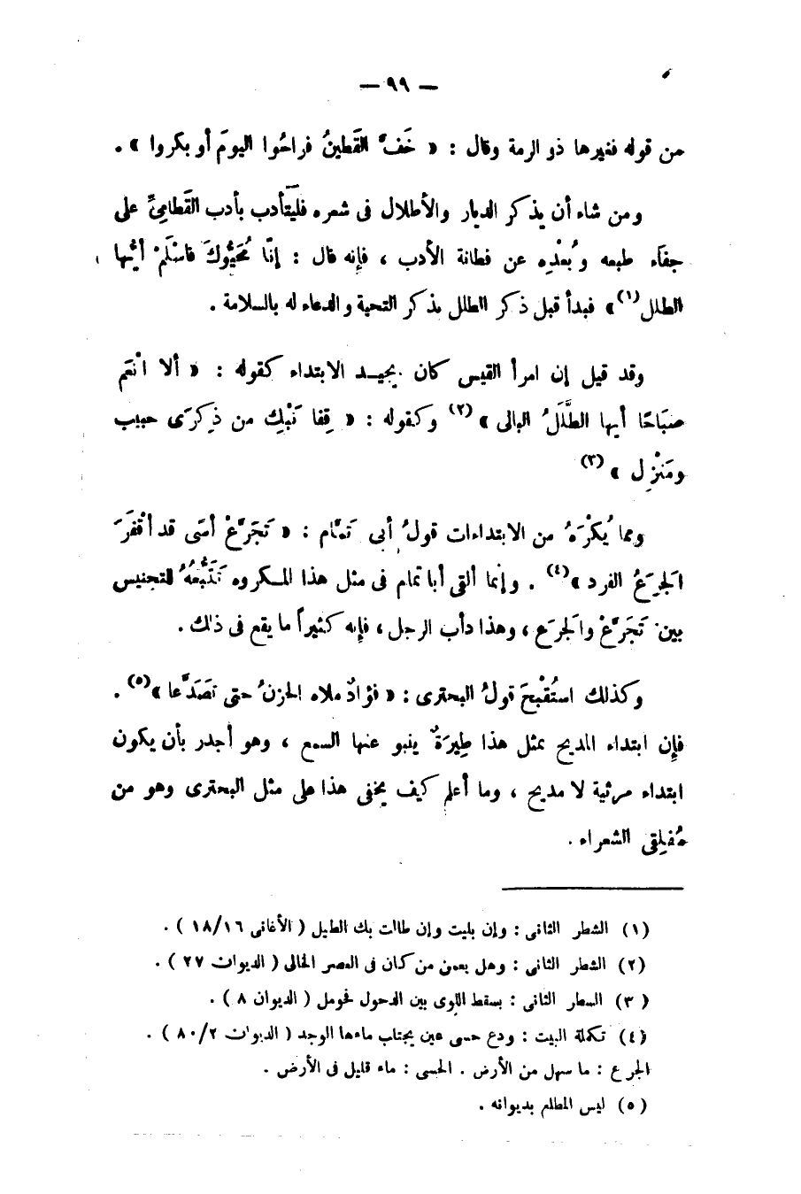 ومن شاء أن يذكر الديار والأطلال في شعره فليتأدب بأدب القطامي على جفاء طبعه، وبعده عن فطانة الأدب فإنه قال:
