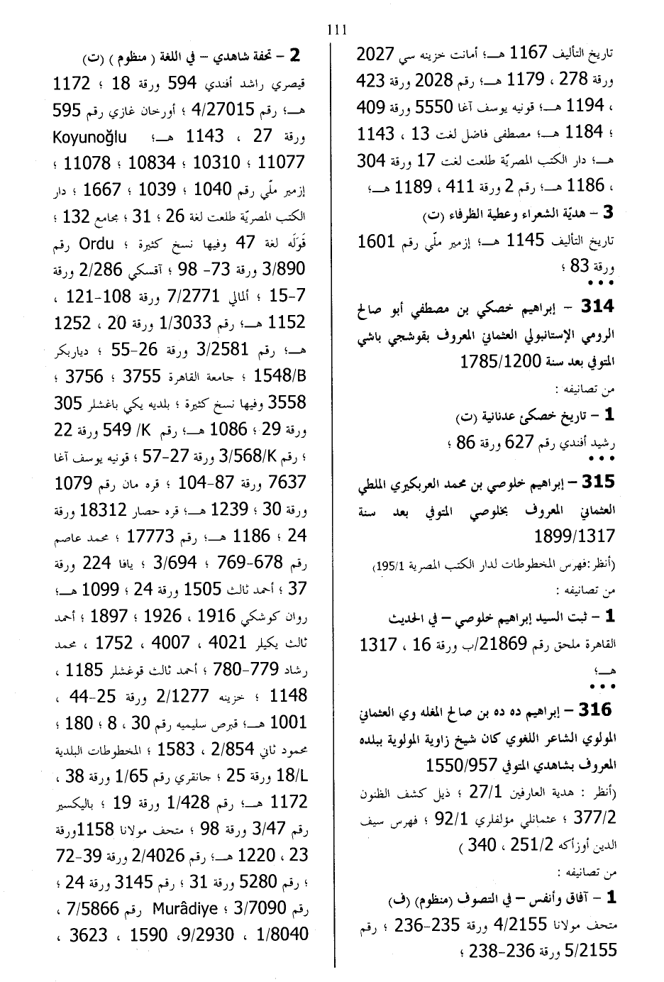 315 - إبراهيم خلوصي بن محمد العربكيري الملطي العثماني
