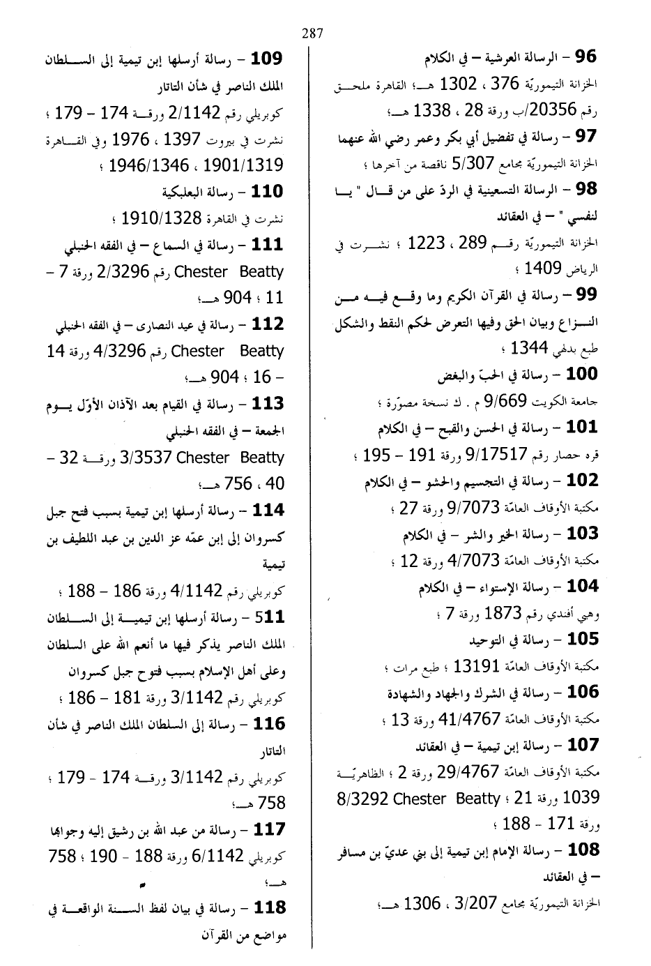 108 - رسالة الإمام ابن تيمية إلي بني عدي بن مسافر - في العقائد