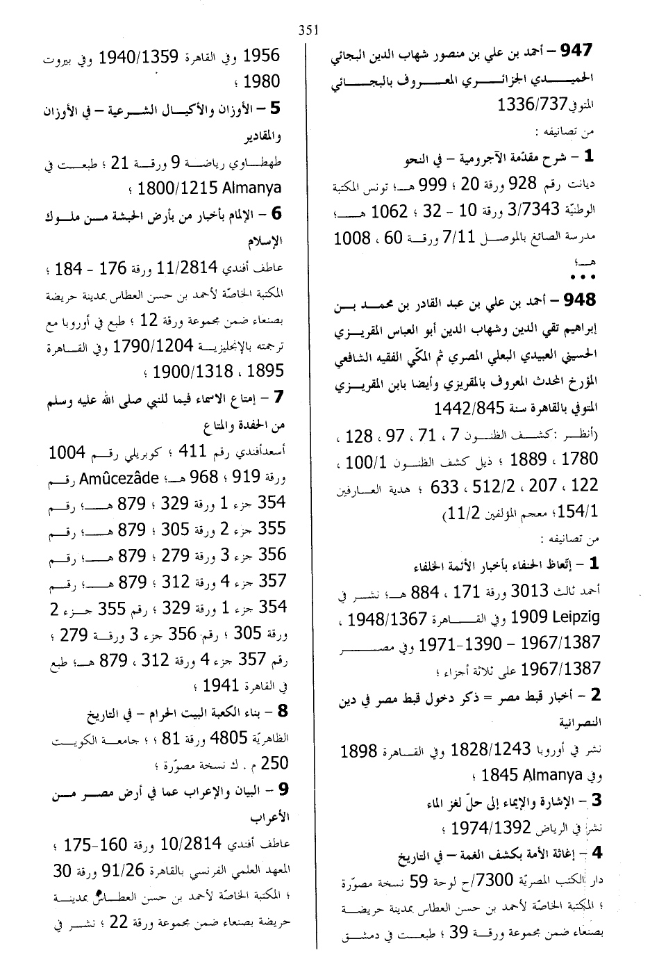 947 - أحمد بن علي بن منصور شهاب الدين البجائي الحميدي الجزائري
