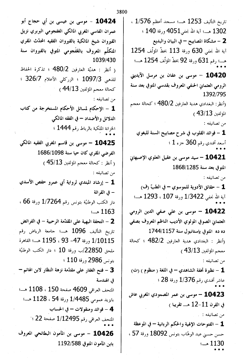 10420 - موسي بن عفان بن مرسل الايديني الرومي العثماني الحنفي