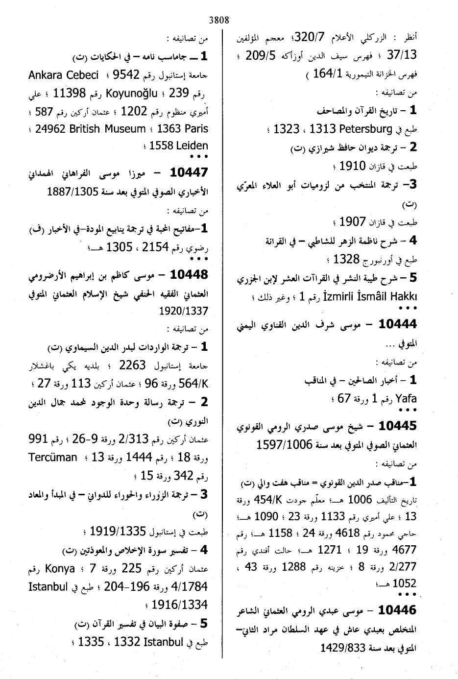 10448 - موسي كاظم بن إبراهيم الارضرومي العثماني