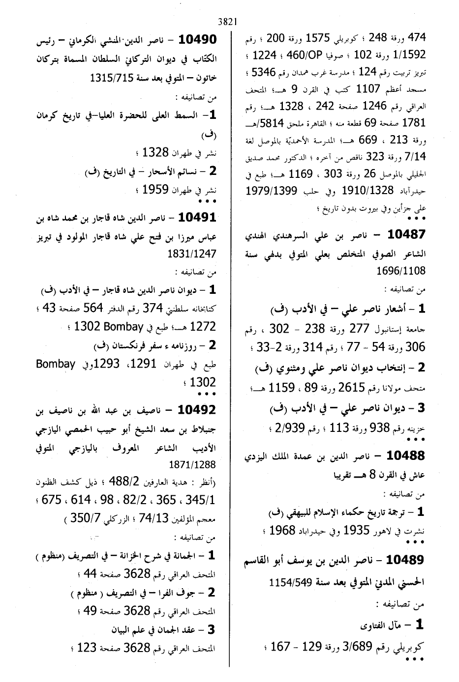 10488 - ناصر الدين بن عمدة الملك اليزدي