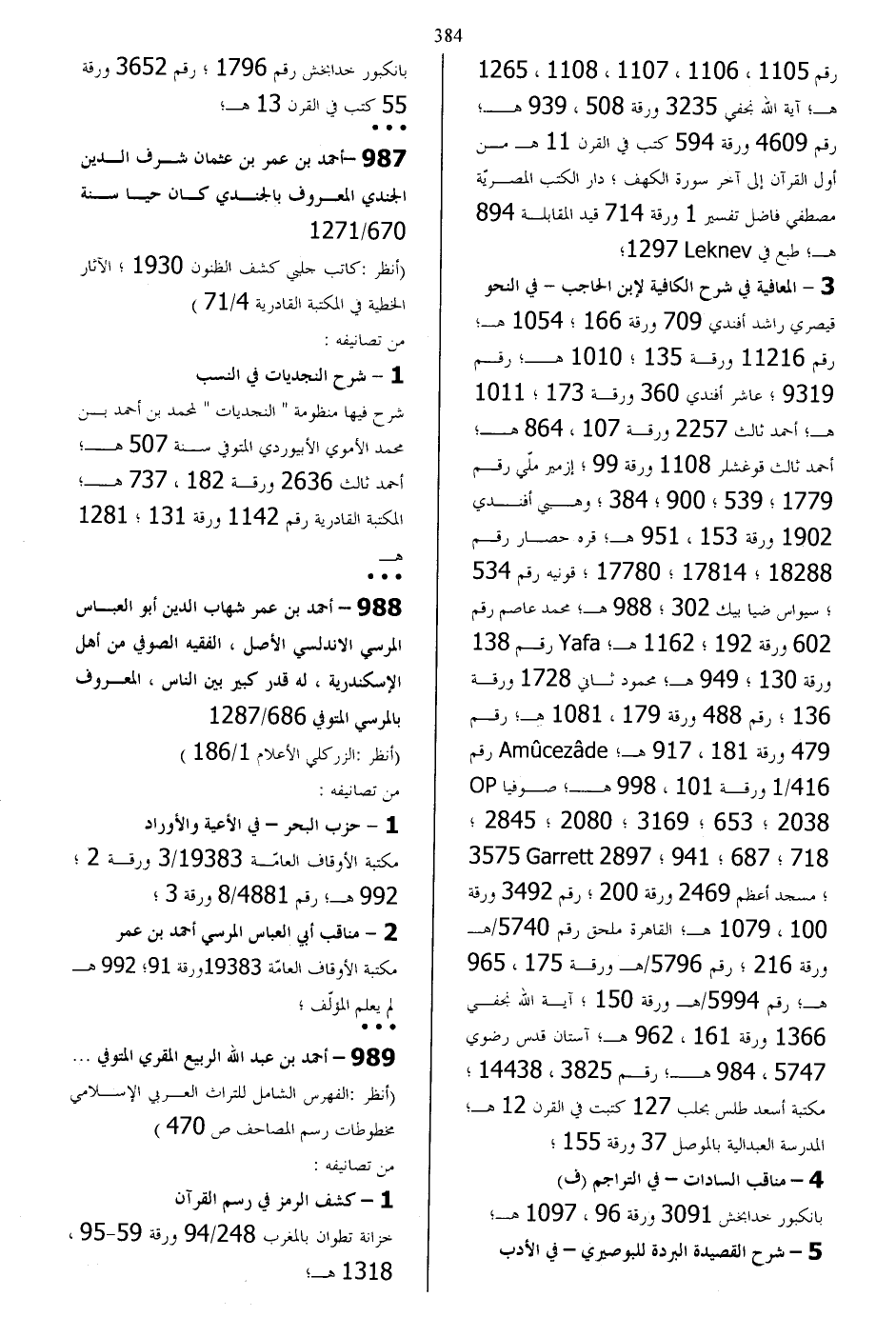 988 - أحمد بن عمر شهاب الدين أبو العباس المرسي الأندلسي الأصل
