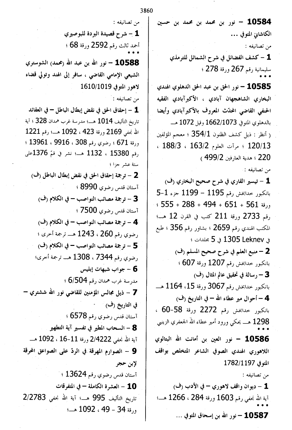10585 - نور الحق بن عبد الحق الدهلوي الهندي البخاري الشاهجهان ابادي الاكبرابادي