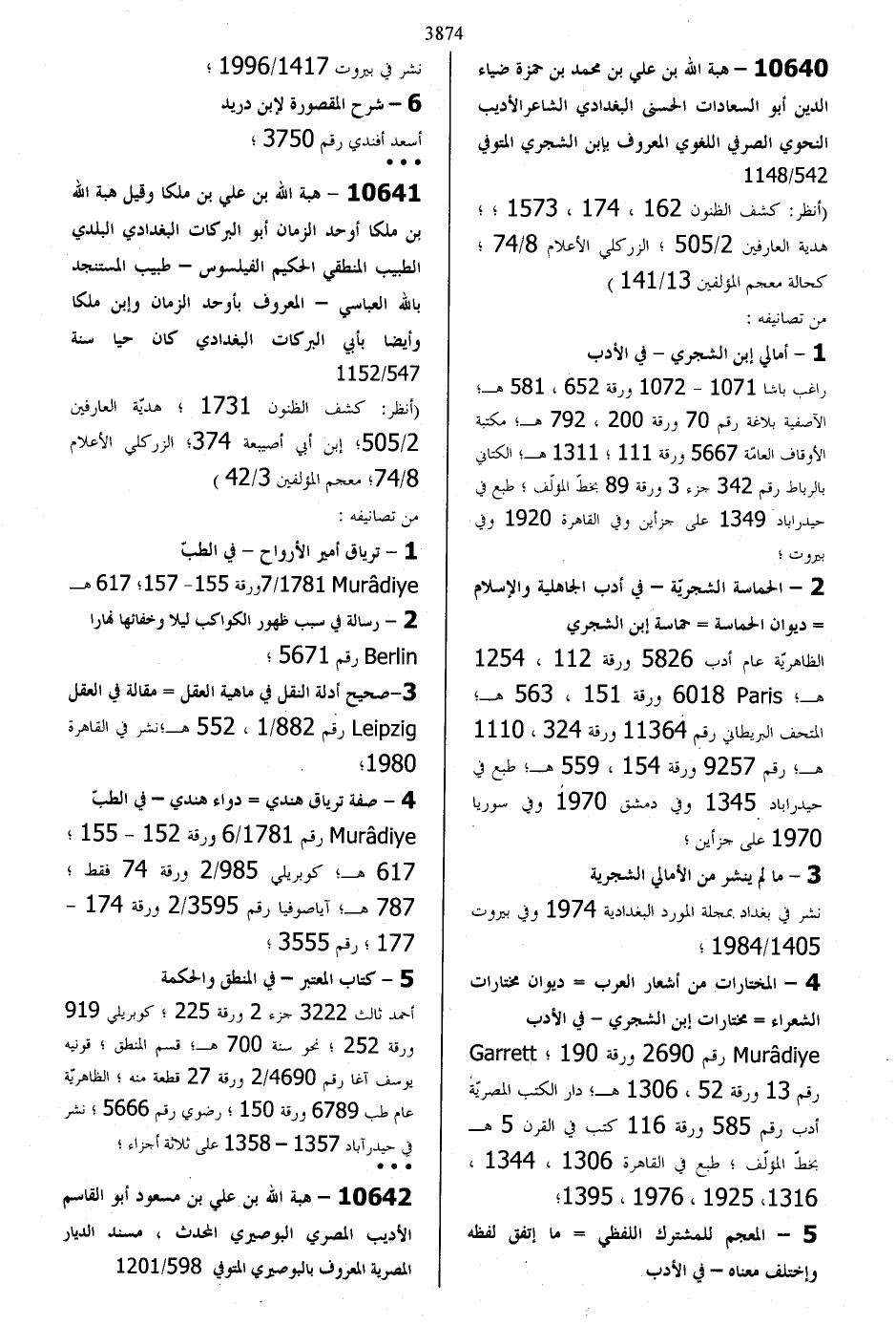 10640 - هبة الله بن علي بن محمد بن حمزة ضياء الدين أبو السعادات الحسني البغدادي
