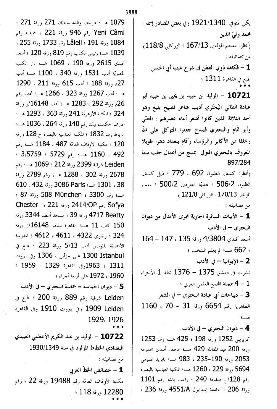 10721 - الوليد بن عبيد بن يحيي بن عبيد أبو عبادة الطائي البحتري