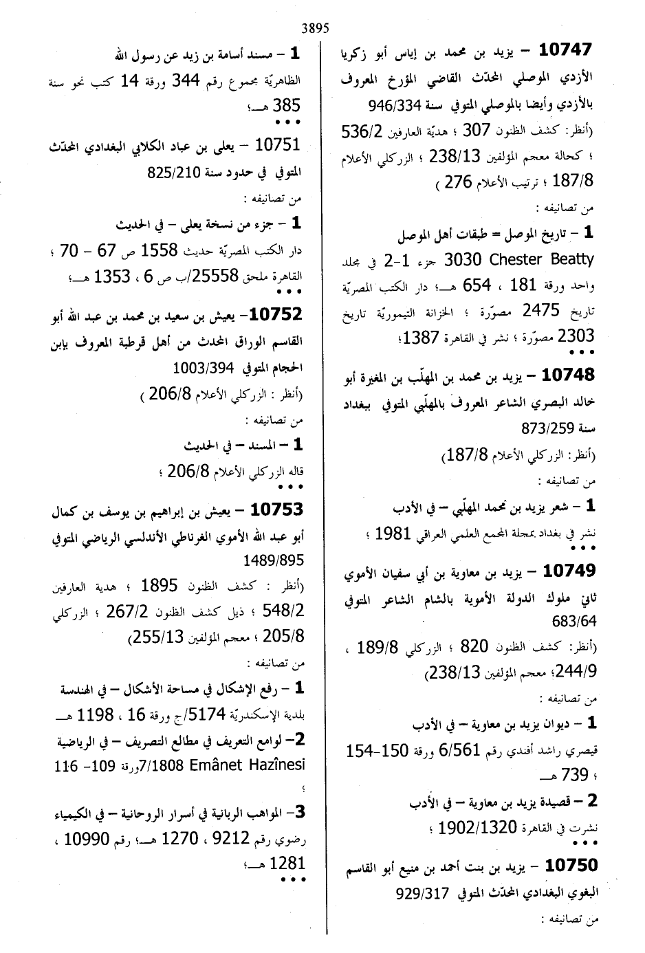 10747 - يزيد بن محمد بن اياس أبو زكريا الأزدي الموصلي المحدث القاضي المؤرخ