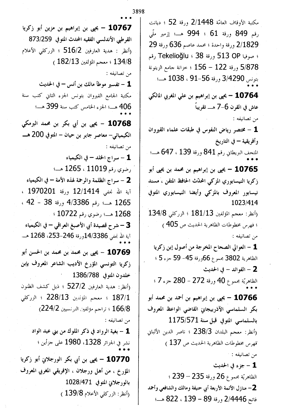10765 - يحيي بن إبراهيم بن محمد بن يحيي أبو زكريا النيسابوري المزكي وأيضا النيسابوري المتوف ي414/ 1023
