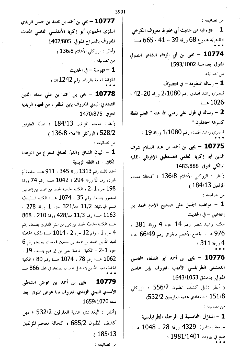 10775 - يحيي بن أحمد بن عبد السلام شرف الدين أبو زكريا العلمي القسنطيني الافريقي