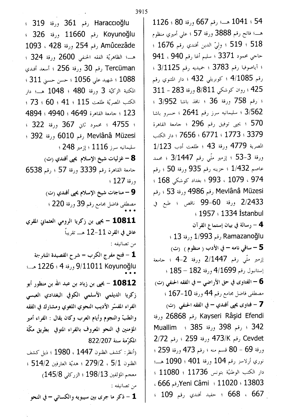10811 - يحيي بن زكريا الرومي العثماني المقري
