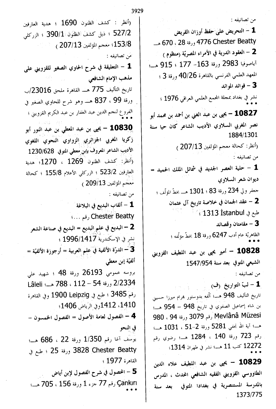 10829 - يحيى بن عبد اللطيف علاء الدين الطاووسي القزويني