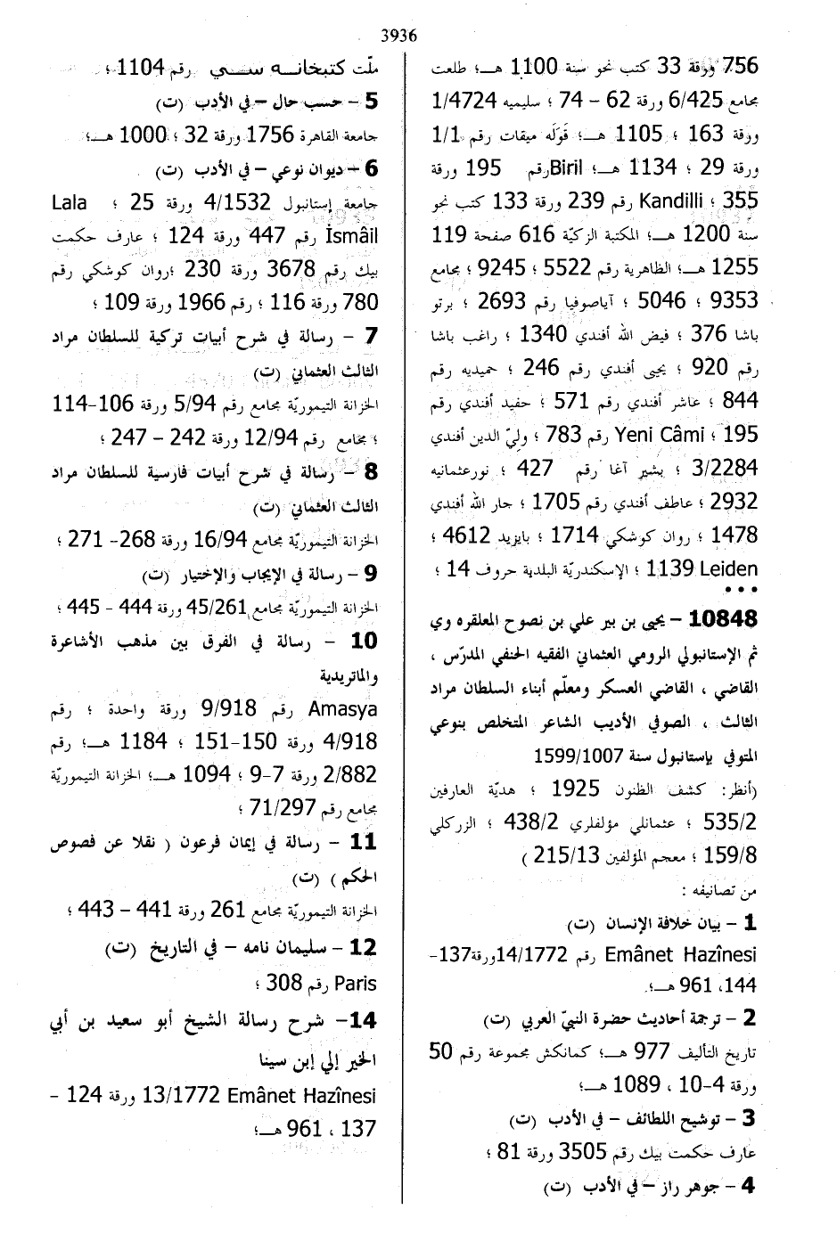 10848 - يحيى بن بير علي بن نصوح المعلقره وي ثم الإستانبولي الرومي العثماني