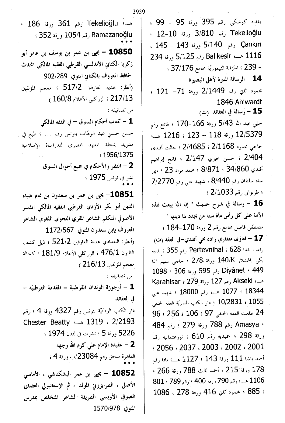 10852 - يحيى بن عمر البكتاشي، الأماسي الأصل، الطرابزوني المولد، ثم الإستانبولي العثماني الصوفي الأويسي الطريقة الشاعر