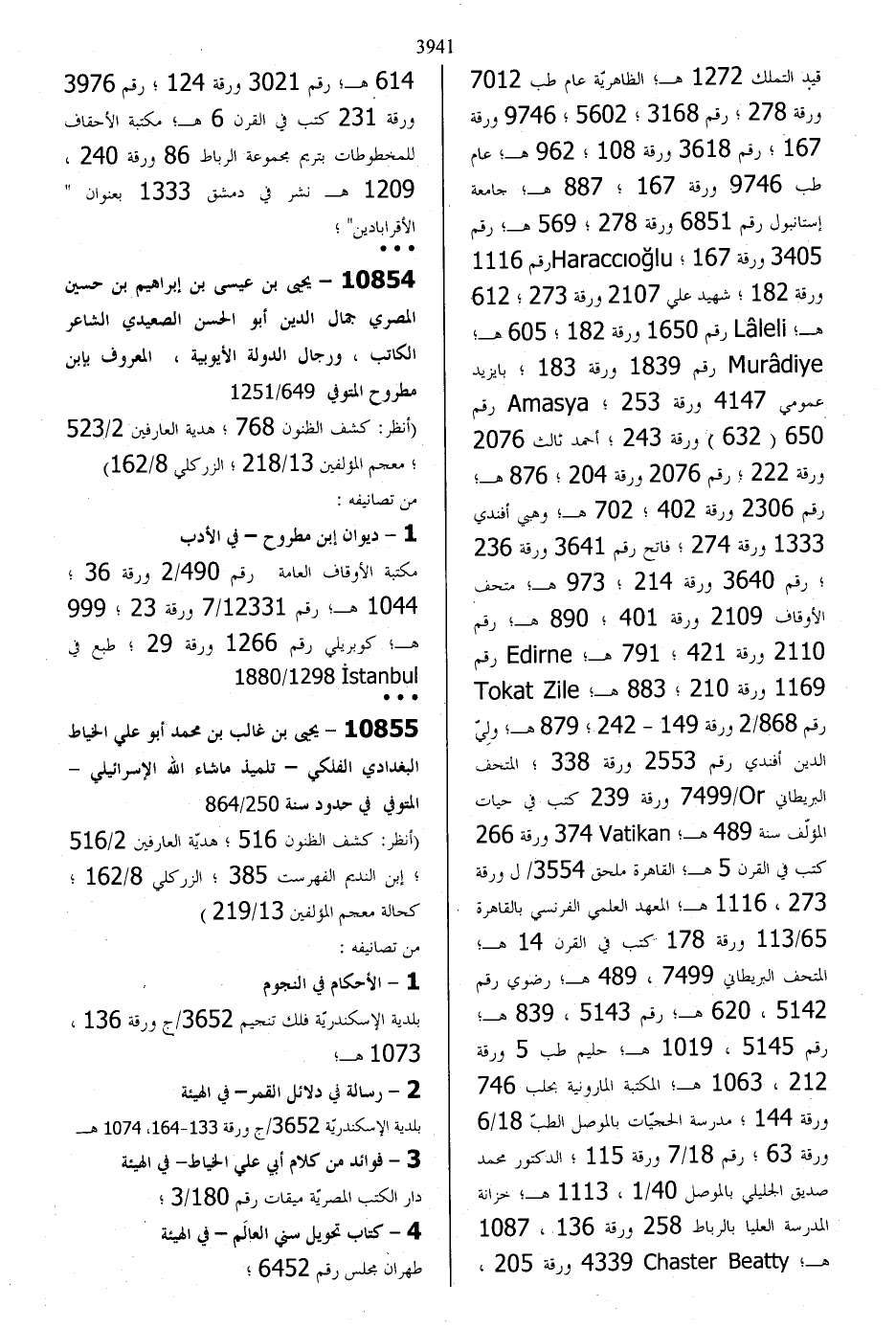10855 - يحيى بن غالب بن محمد أبو علي الخياط البغدادي الفلكي