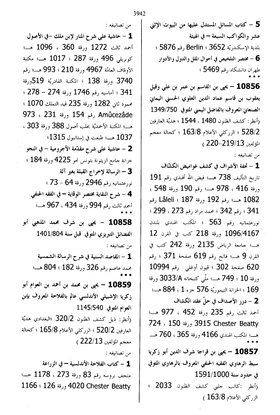 10858 - يحيى بن شرف محمد المذهبي أبو الفضائل التبريزي