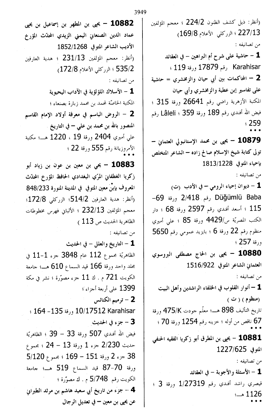 10880 - يحيى بن الحاج مصطفى البروسوي العثماني الشاعر