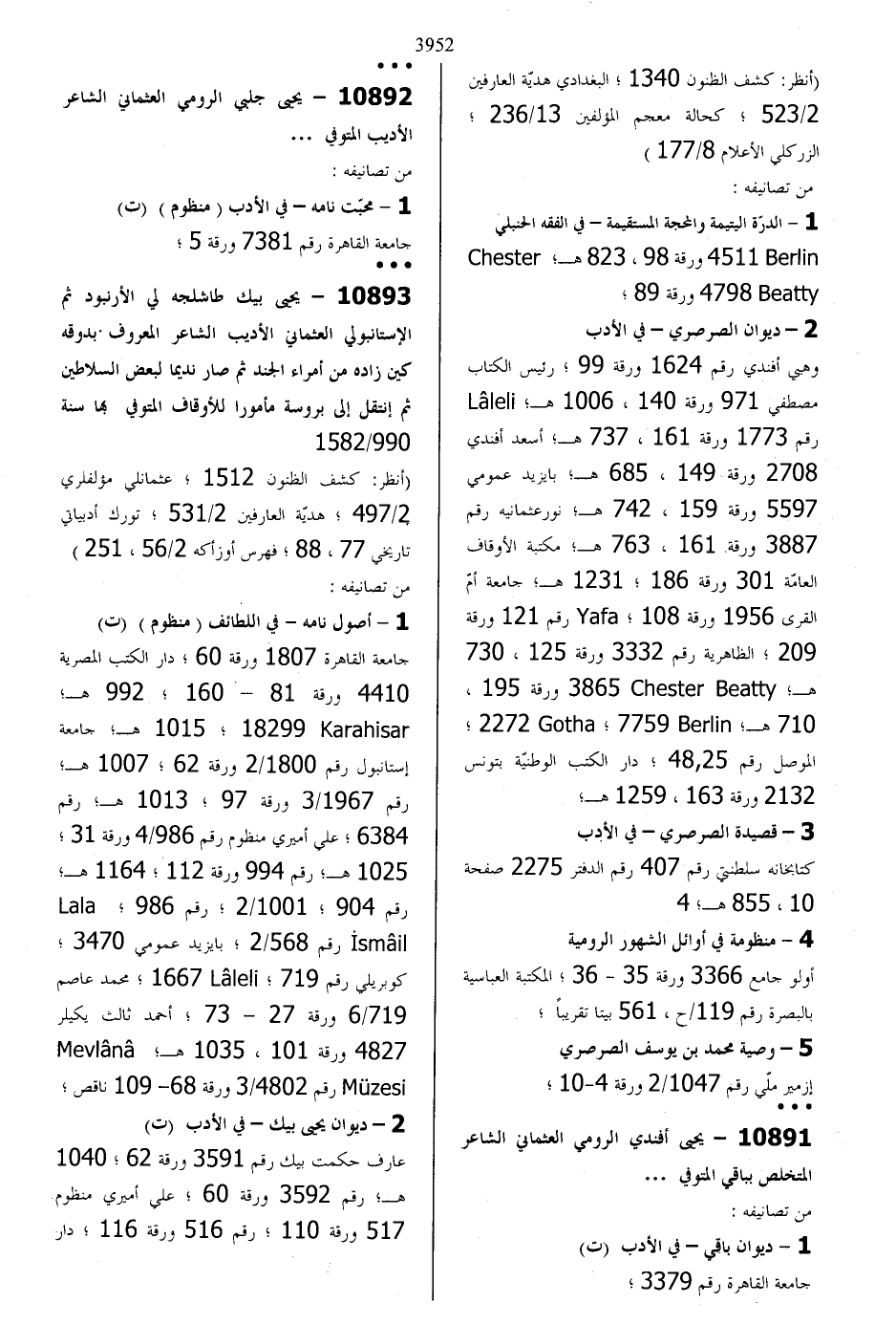 10891 - يحيى أفندي الرومي العثماني الشاعر