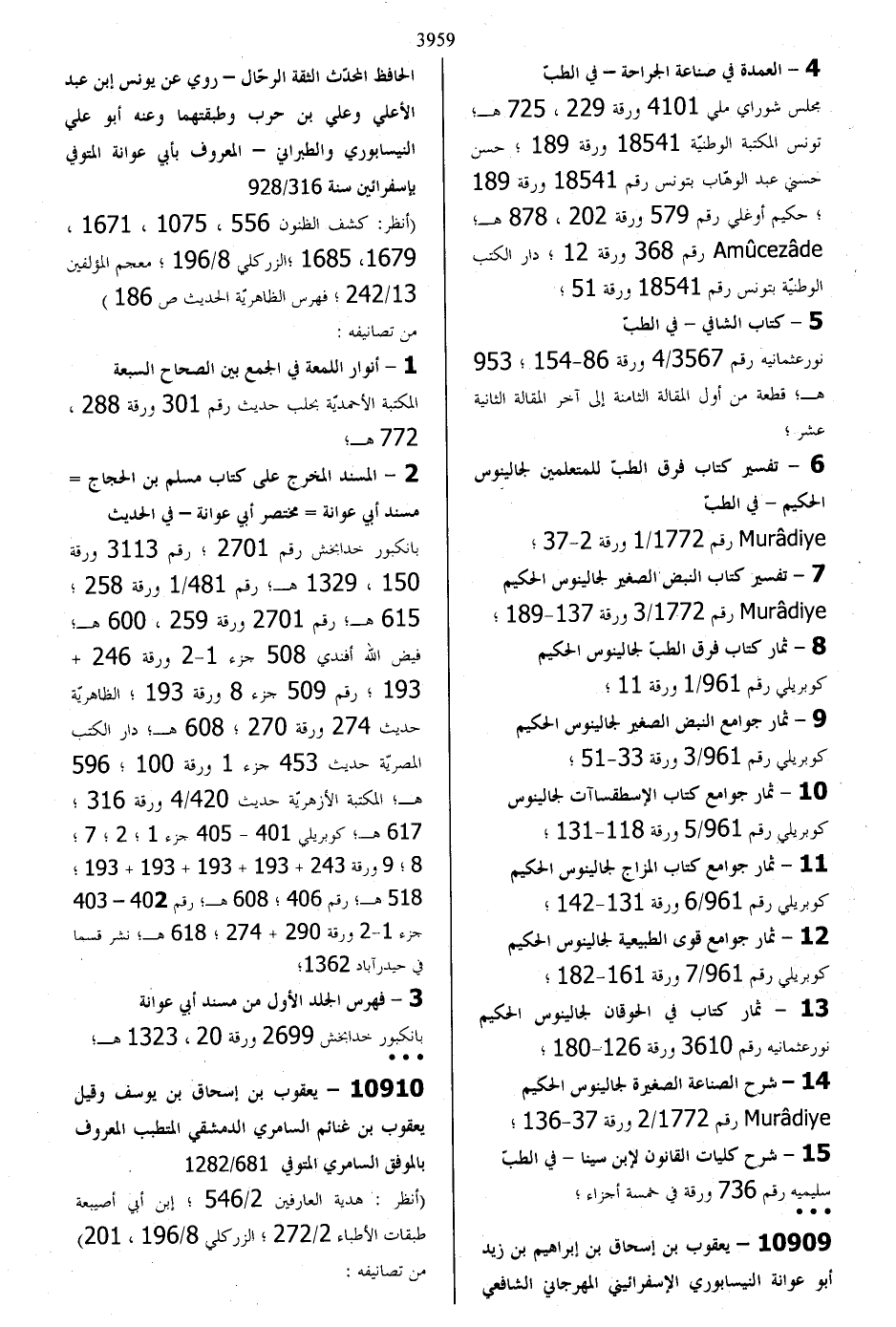 10910 - يعقوب بن إسحاق بن يوسف وقيل يعقوب بن غنائم السامري الدمشقي المتطبب
