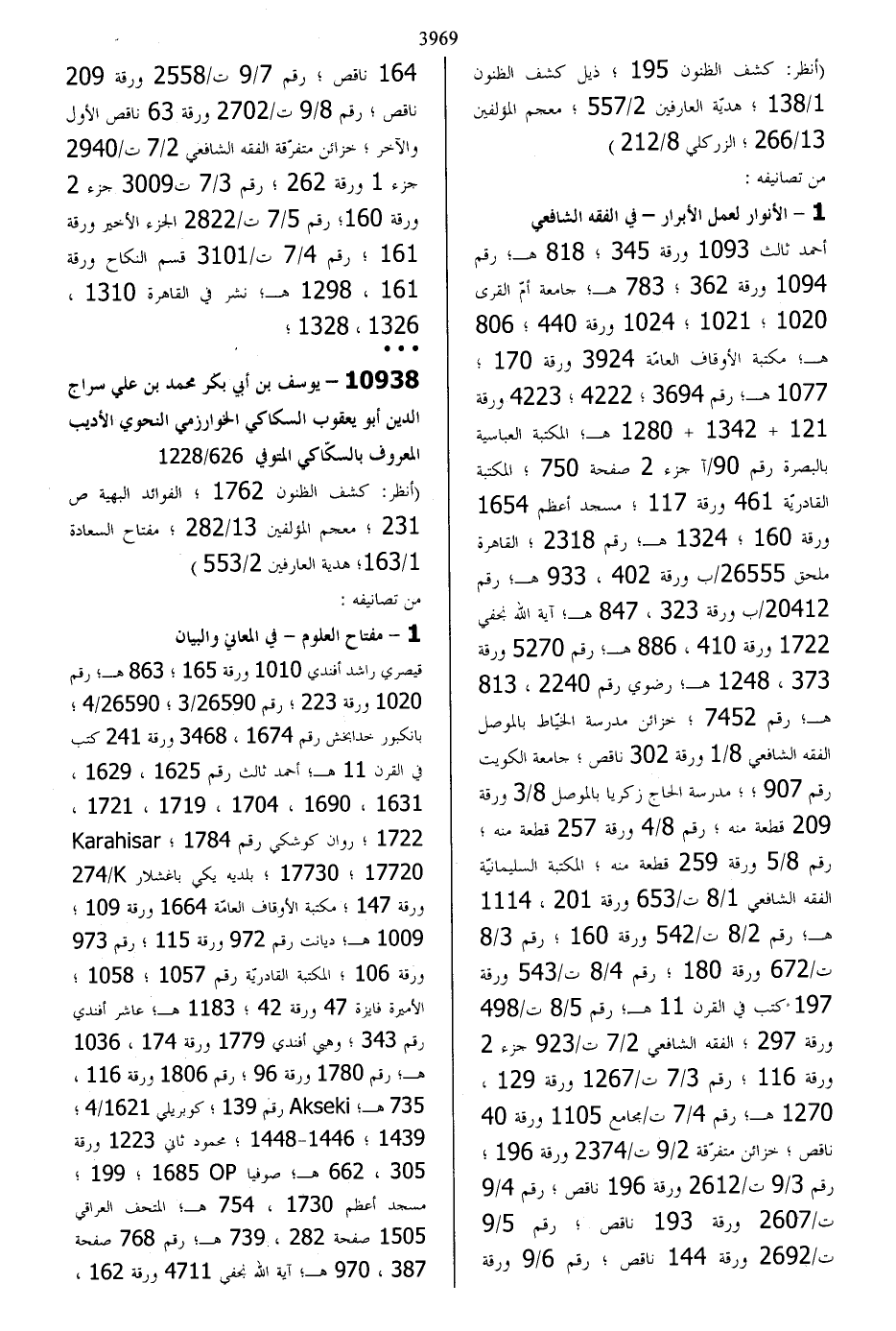 10938 - يوسف بن أبي بكر محمد بن علي سراج الدين أبو يعقوب السكاكي الخوارزمي النحوي الأديب