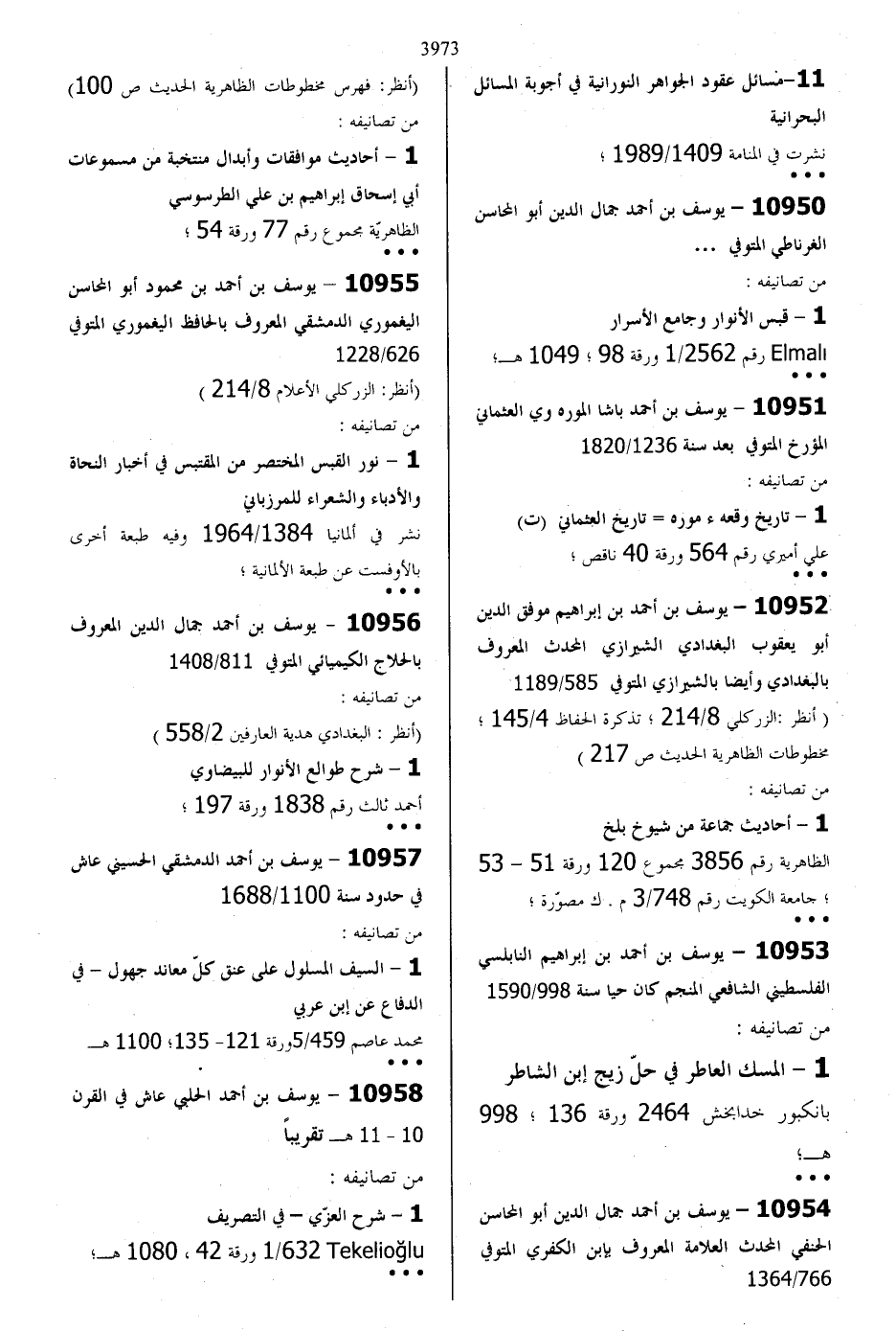 10957 - يوسف بن أحمد الدمشقي الحسيني