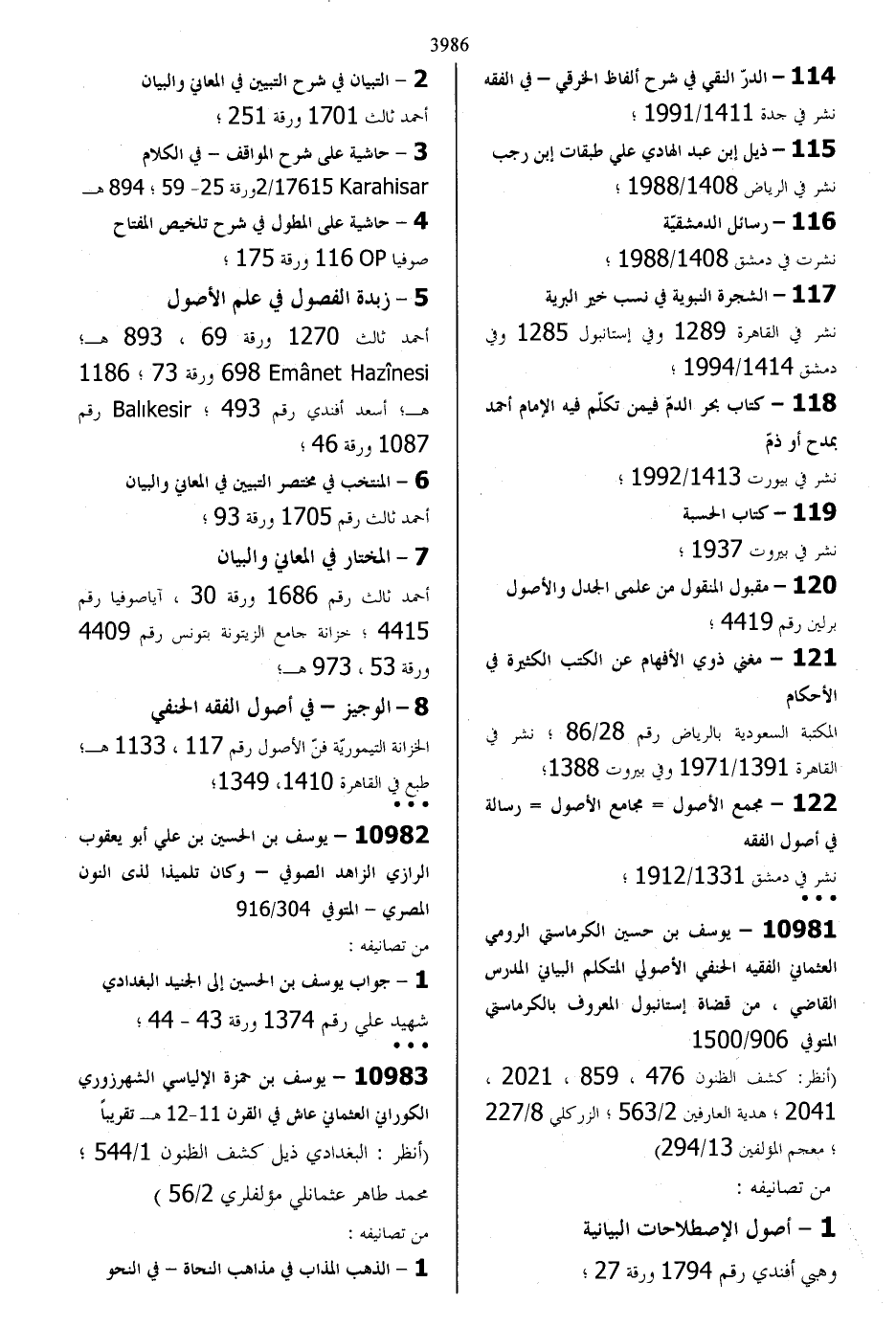 10981 - يوسف بن حسين الكرماستي الرومي العثماني