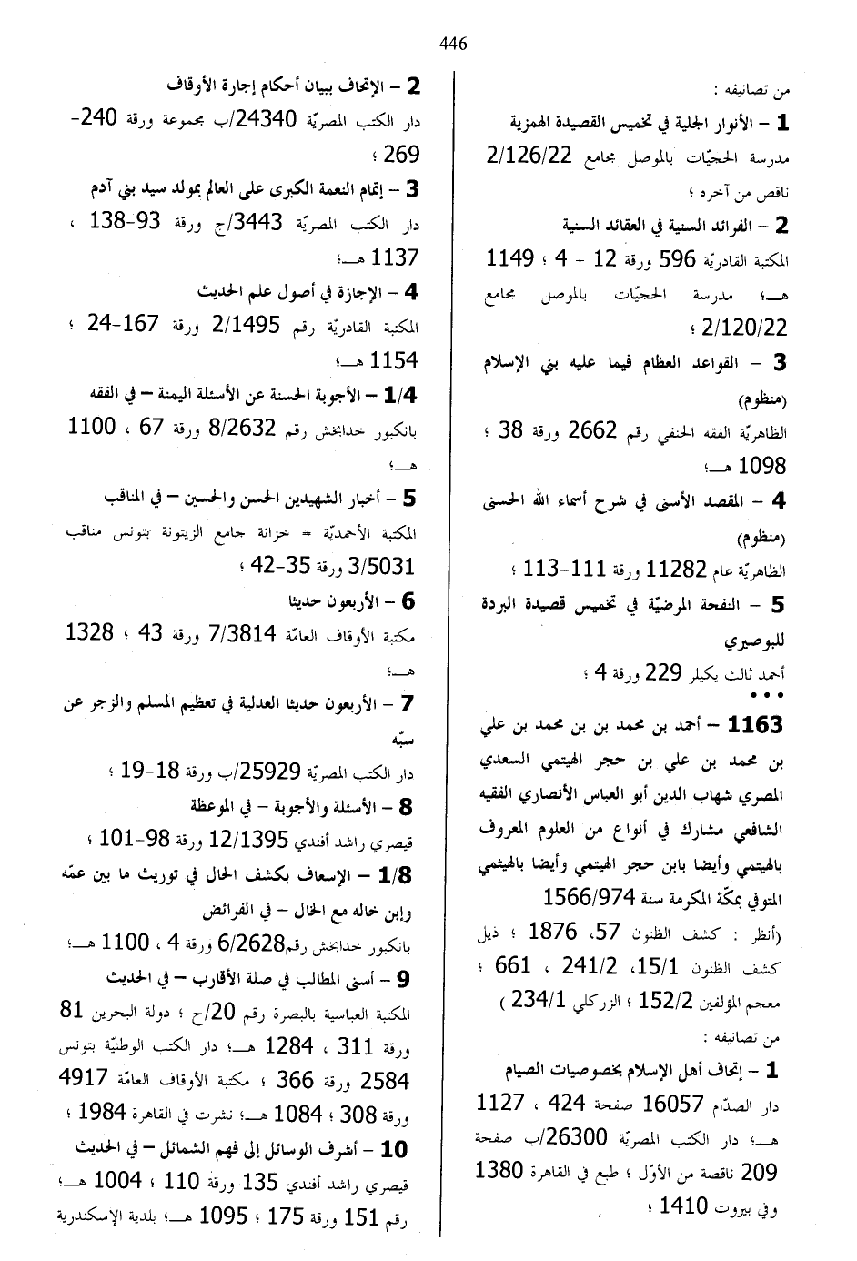 1163 - أحمد بن محمد بن محمد بن علي بن محمد بن علي بن حجر الهيتمي السعدي المصري شهاب الدين أبو العباس الأنصاري