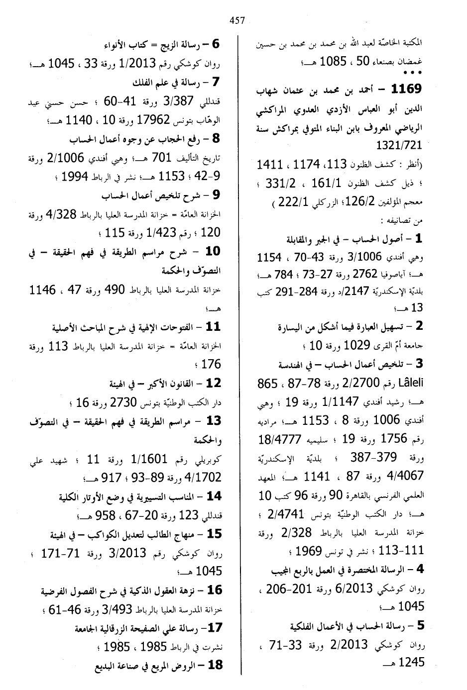 1169 - أحمد بن محد بن عثمان شهاب الدين أبو العباس الأزدي العدوي المراكشي