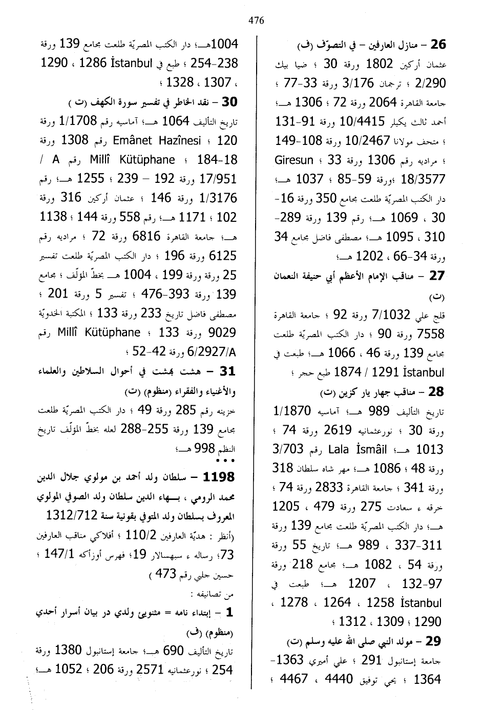 1198 - سلطان ولد أحمد بن مولوي جلال الدين محمد الرومي بهاء الدين سلطان ولد الصوفي المولوي