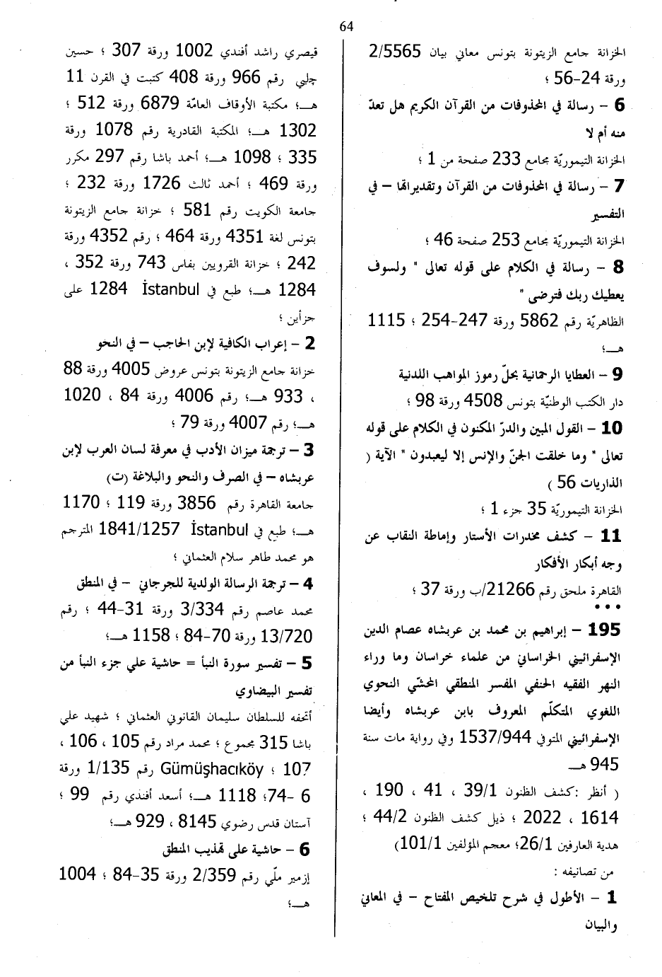 195 - إبراهيم بن محمد بن عربشاه عصام الدين الإسفرائيني الخراساني