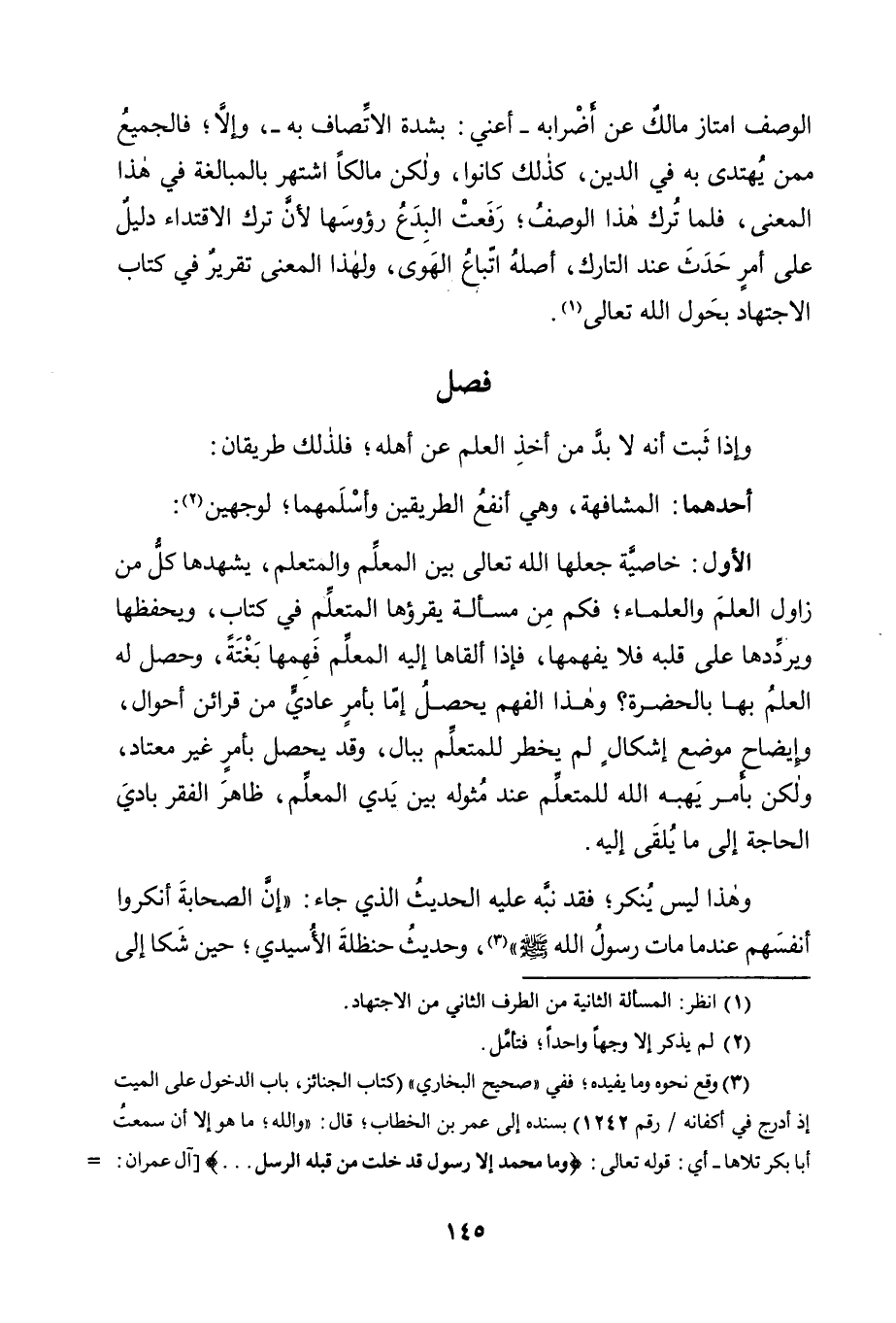 وَإِذَا ثَبَتَ أَنَّهُ لَا بُدَّ مِنْ أَخْذِ الْعِلْمِ عَنْ أَهْلِهِ؛ فَلِذَلِكَ طَرِيقَانِ: