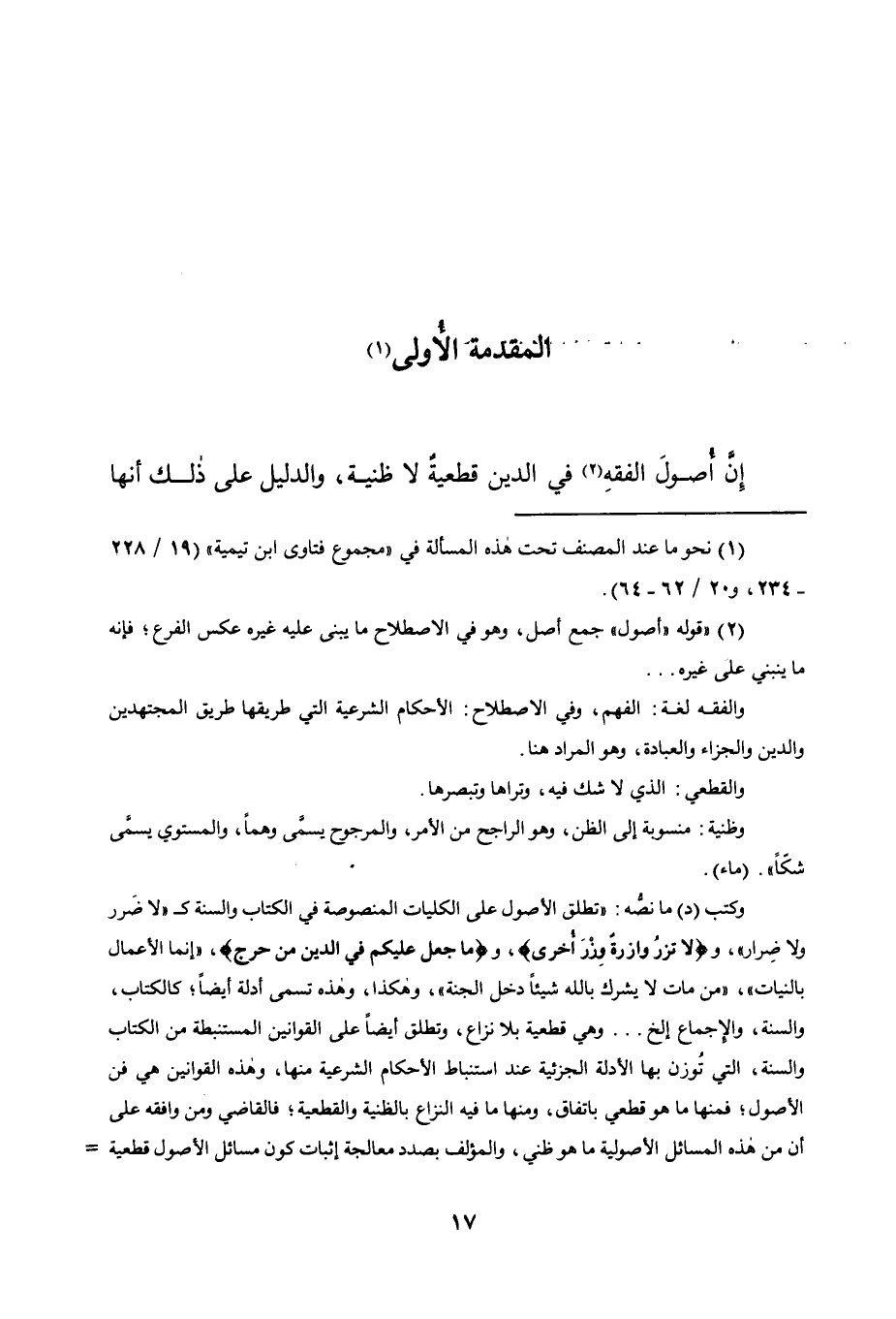 إِنَّ أُصُولَ الْفِقْهِ2 فِي الدِّينِ قَطْعِيَّةٌ لَا ظَنِّيَّةٌ، وَالدَّلِيلُ عَلَى ذَلِكَ أَنَّهَا
