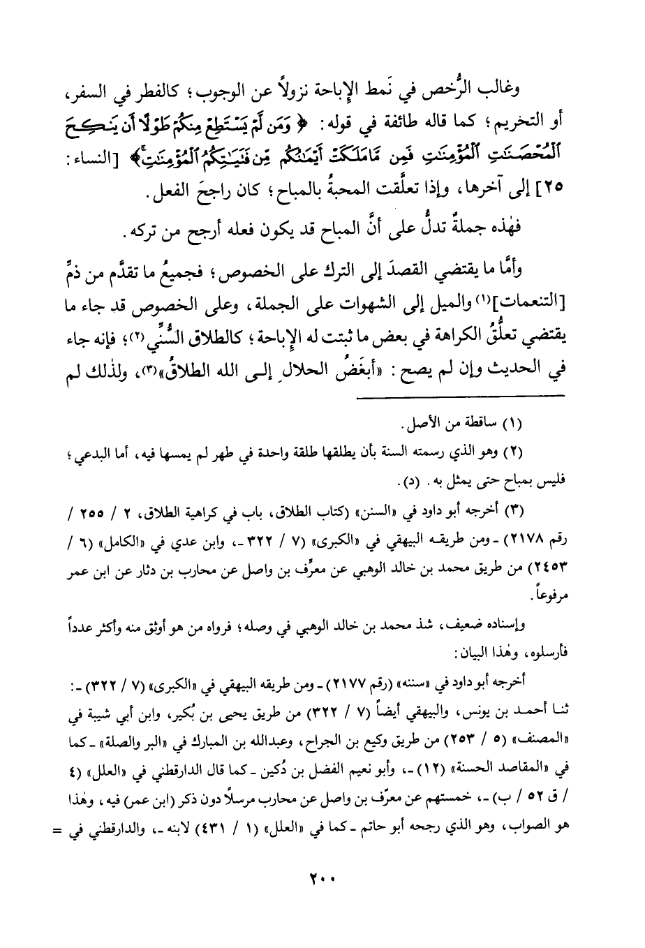 وَغَالِبُ الرُّخَصِ فِي نَمَطِ الْإِبَاحَةِ نُزُولًا عَنِ الْوُجُوبِ؛ كَالْفِطْرِ فِي السَّفَرِ، أَوِ التَّحْرِيمِ؛ كَمَا قَالَهُ طَائِفَةٌ فِي قَوْلِهِ: {وَمَنْ لَمْ يَسْتَطِعْ مِنْكُمْ طَوْلًا أَنْ يَنْكِحَ الْمُحْصَنَاتِ الْمُؤْمِنَاتِ فَمِنْ مَا مَلَكَتْ أَيْمَانُكُمْ مِنْ فَتَيَاتِكُمُ الْمُؤْمِنَاتِ} [النِّسَاءِ: 25] إِلَى آخِرِهَا, وَإِذَا تَعَلَّقَتِ الْمَحَبَّةُ بِالْمُبَاحِ؛ كَانَ رَاجِحَ الْفِعْلِ.
