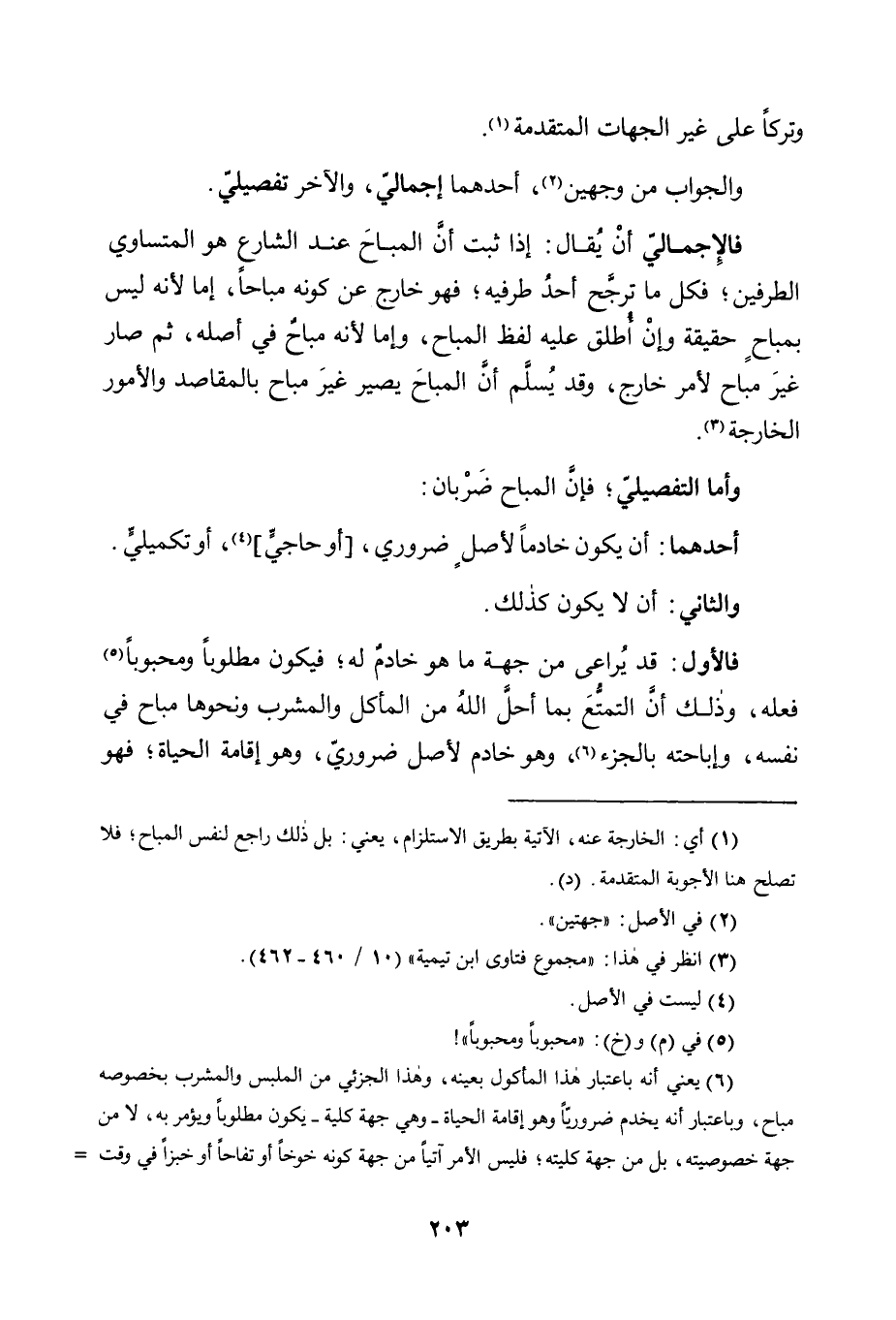 فَالْأَوَّلُ: قَدْ يُراعى مِنْ جِهَةِ مَا هُوَ خَادِمٌ لَهُ؛ فَيَكُونُ مَطْلُوبًا وَمَحْبُوبًا5 فِعْلُهُ، وَذَلِكَ أَنَّ التَّمَتُّعَ بِمَا أَحَلَّ اللَّهُ مِنَ الْمَأْكَلِ وَالْمَشْرَبِ وَنَحْوِهَا مُبَاحٌ فِي نَفْسِهِ، وَإِبَاحَتُهُ بِالْجُزْءِ6، وَهُوَ خَادِمٌ لِأَصْلٍ ضَرُورِيٍّ، وَهُوَ إِقَامَةُ الحياة؛ فهو