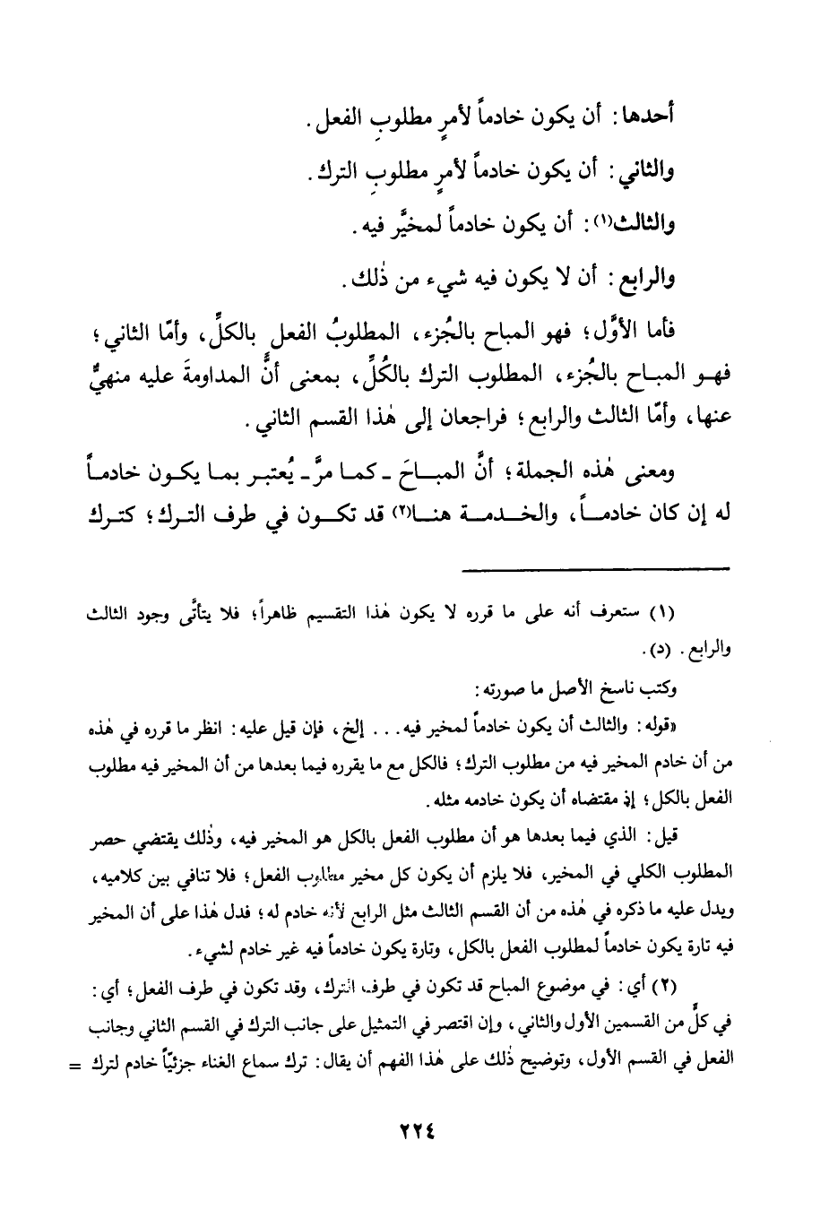 أَحَدُهَا: أَنْ يَكُونَ خَادِمًا لِأَمْرٍ مَطْلُوبِ الْفِعْلِ.