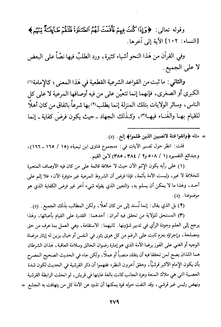وَقَوْلِهِ تَعَالَى: {وَإِذَا كُنْتَ فِيهِمْ فَأَقَمْتَ لَهُمُ الصَّلاةَ فَلْتَقُمْ طَائِفَةٌ مِنْهُمْ} [النِّسَاءِ: 102] الْآيَةَ إِلَى آخِرِهَا.