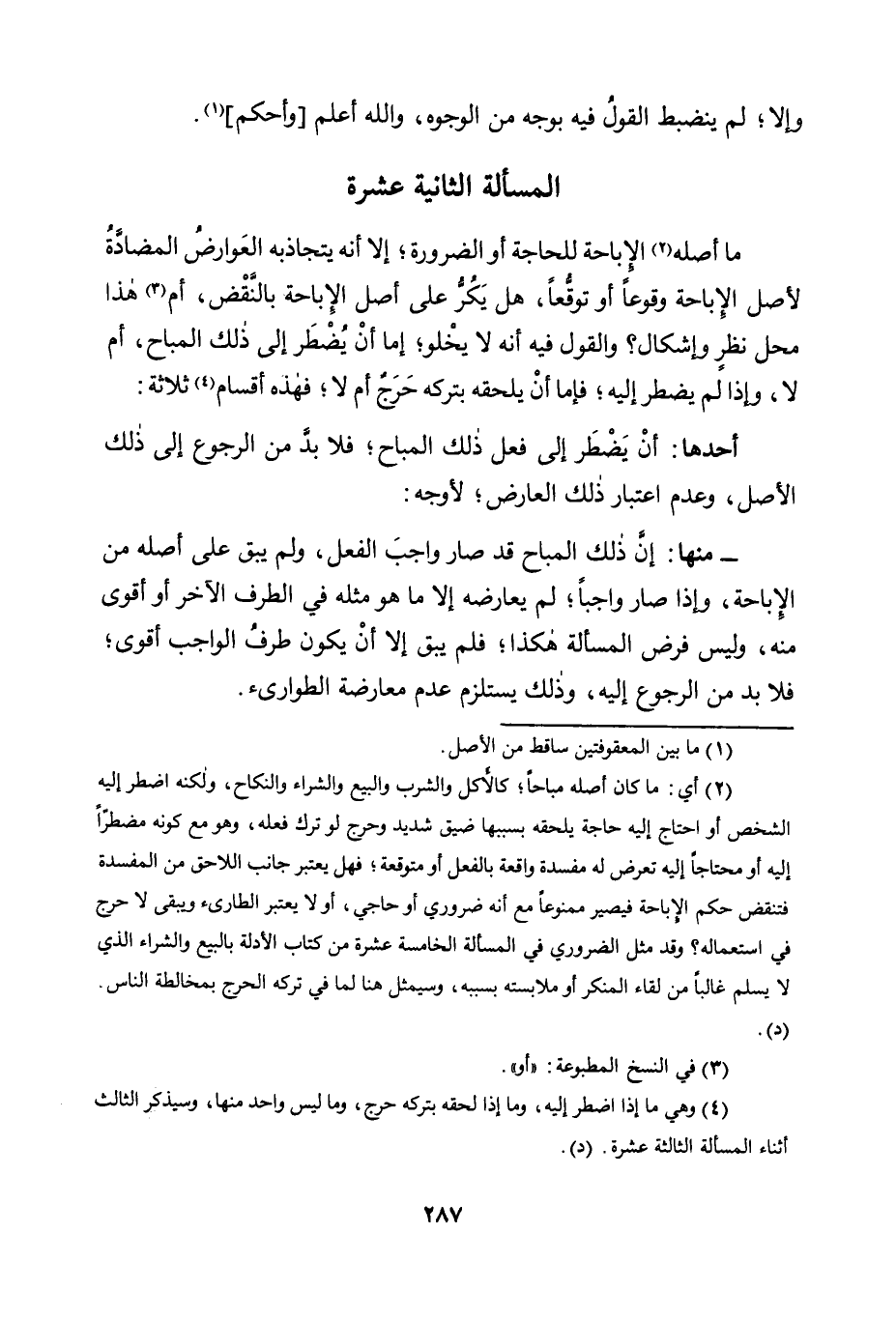 المسألة الثانية عشرة: للحاجة والضرورة