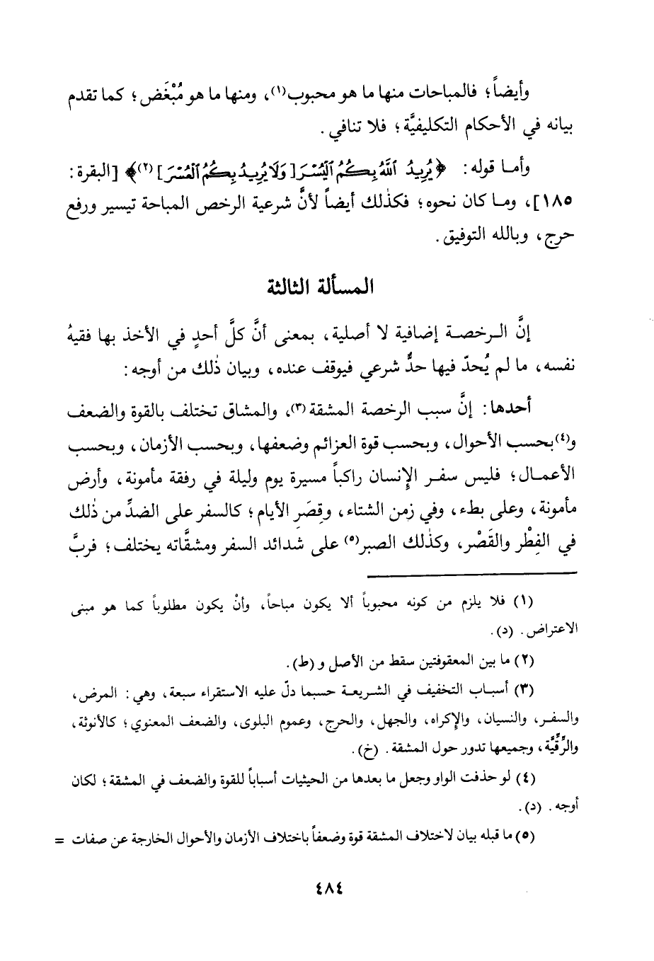 وَأَمَّا قَوْلُهُ: {يُرِيدُ اللَّهُ بِكُمُ الْيُسْرَ [وَلا يُرِيدُ بِكُمُ الْعُسْرَ] 2} [الْبَقَرَةِ: 185] ، وَمَا كَانَ نَحْوَهُ فَكَذَلِكَ أَيْضًا؛ لِأَنَّ شَرْعِيَّةَ الرُّخَصِ الْمُبَاحَةِ تَيْسِيرُ وَرَفْعُ حَرَجٍ، وَبِاللَّهِ التَّوْفِيقُ.