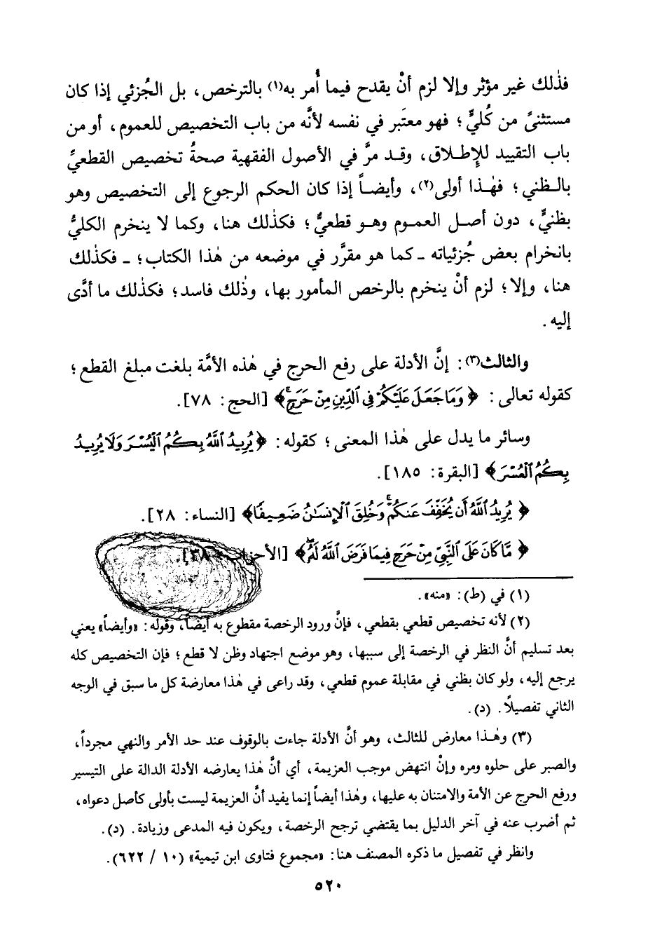 إِنَّ الْأَدِلَّةَ عَلَى رَفْعِ الْحَرَجِ فِي هَذِهِ الْأُمَّةِ بَلَغَتْ مَبْلَغَ الْقَطْعِ؛ كَقَوْلِهِ تَعَالَى: {وَمَا جَعَلَ عَلَيْكُمْ فِي الدِّينِ مِنْ حَرَجٍ} [الْحَجِّ: 78] .