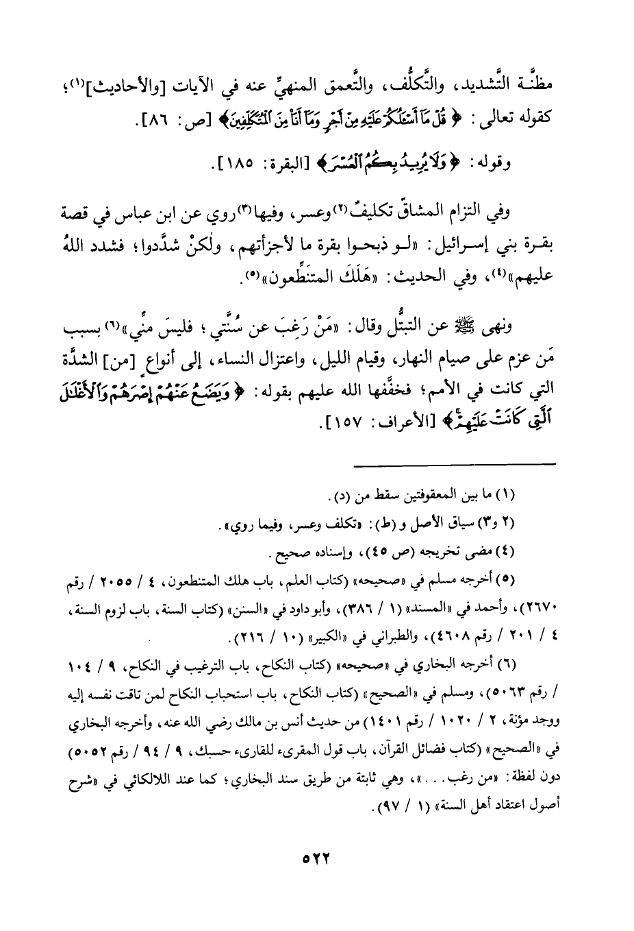 5 أخرجه مسلم في "صحيحه" "كتاب العلم، باب هلك المتنطعون، 4/ 2055/ رقم 2670"، وأحمد في "المسند" "1/ 386"، وأبو داود في "السنن" "كتاب السنة، باب لزوم السنة، 4/ 201/ رقم 4608"، والطبراني في "الكبير" "10/ 216".