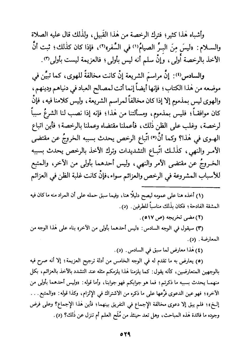 إِنَّ مَرَاسِمَ الشَّرِيعَةِ إِنْ كَانَتْ مُخَالَفَةً لِلْهَوَى، كَمَا تَبَيَّنَ فِي مَوْضِعِهِ مِنْ هَذَا الْكِتَابِ؛ فَإِنَّهَا أَيْضًا إِنَّمَا أَتَتْ لِمَصَالِحِ الْعِبَادِ فِي دُنْيَاهُمْ وَدِينِهِمْ، وَالْهَوَى لَيْسَ بِمَذْمُومٍ إِلَّا إِذَا كَانَ مُخَالِفًا لِمَرَاسِمِ الشَّرِيعَةِ، وَلَيْسَ كَلَامُنَا فِيهِ، فَإِنْ كَانَ مُوَافِقًا؛ فَلَيْسَ بِمَذْمُومٍ، وَمَسْأَلَتُنَا مِنْ هَذَا؛ فَإِنَّهُ إِذَا نَصَبَ لَنَا الشَّرْعُ سَبَبًا لِرُخْصَةٍ، وَغَلَبَ عَلَى الظَّنِّ ذَلِكَ, فَأَعْمَلْنَا مقتضاه وعلمنا بِالرُّخْصَةِ؛ فَأَيْنَ اتِّبَاعُ الْهَوَى فِي هَذَا؟ وَكَمَا أَنَّ5 اتِّبَاعَ الرُّخَصِ يَحْدُثُ بِسَبَبِهِ الْخُرُوجُ عَنْ مُقْتَضَى الْأَمْرِ وَالنَّهْيِ، كَذَلِكَ اتِّبَاعُ التَّشْدِيدَاتِ وَتَرْكُ الْأَخْذِ بِالرُّخَصِ يَحْدُثُ بِسَبَبِهِ الْخُرُوجُ عَنْ مُقْتَضَى الْأَمْرِ وَالنَّهْيِ، وَلَيْسَ أَحَدُهُمَا بِأَوْلَى مِنَ الْآخَرِ، وَالْمُتَّبِعُ لِلْأَسْبَابِ الْمَشْرُوعَةِ فِي الرُّخَصِ وَالْعَزَائِمِ سَوَاءً، فإن كانت غلبة الظن في العزائم