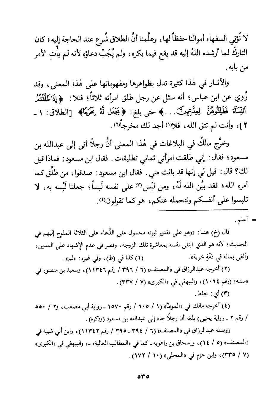 4 أخرجه مالك في "الموطأ" "1/ 605/ رقم 1570- رواية أبي مصعب، و2/ 550/ رقم 2- رواية يحيى" بلغه أن رجلا جاء إلى عبد الله بن مسعود "وذكره".