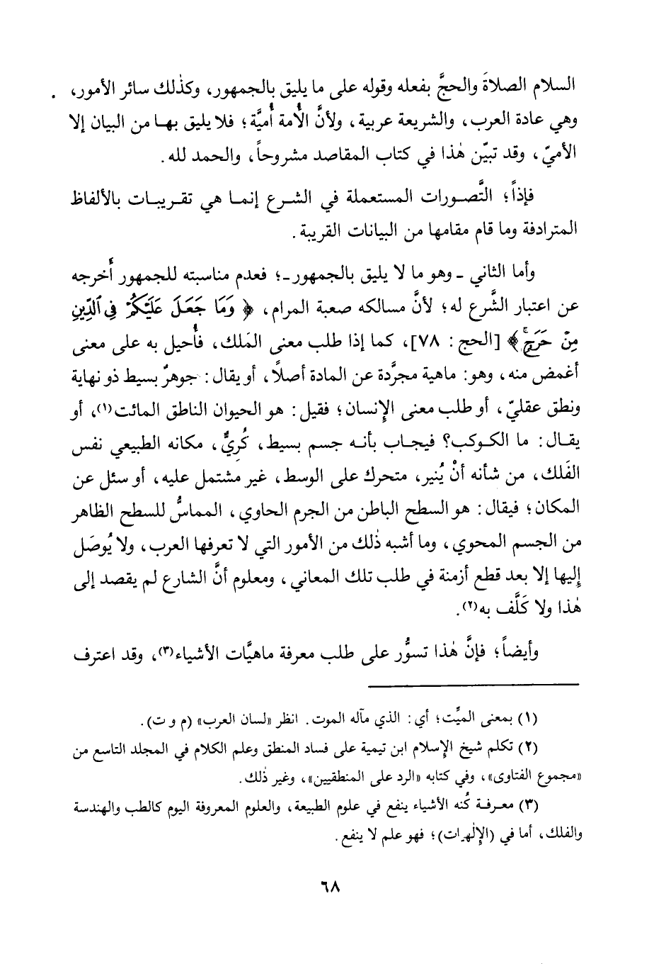 2 تكلم شيخ الإسلام ابن تيمية على فساد المنطق وعلم الكلام في المجلد التاسع من "مجموع الفتاوى"، وفي كتابه "الرد على المنطقيين"، وغير ذلك.