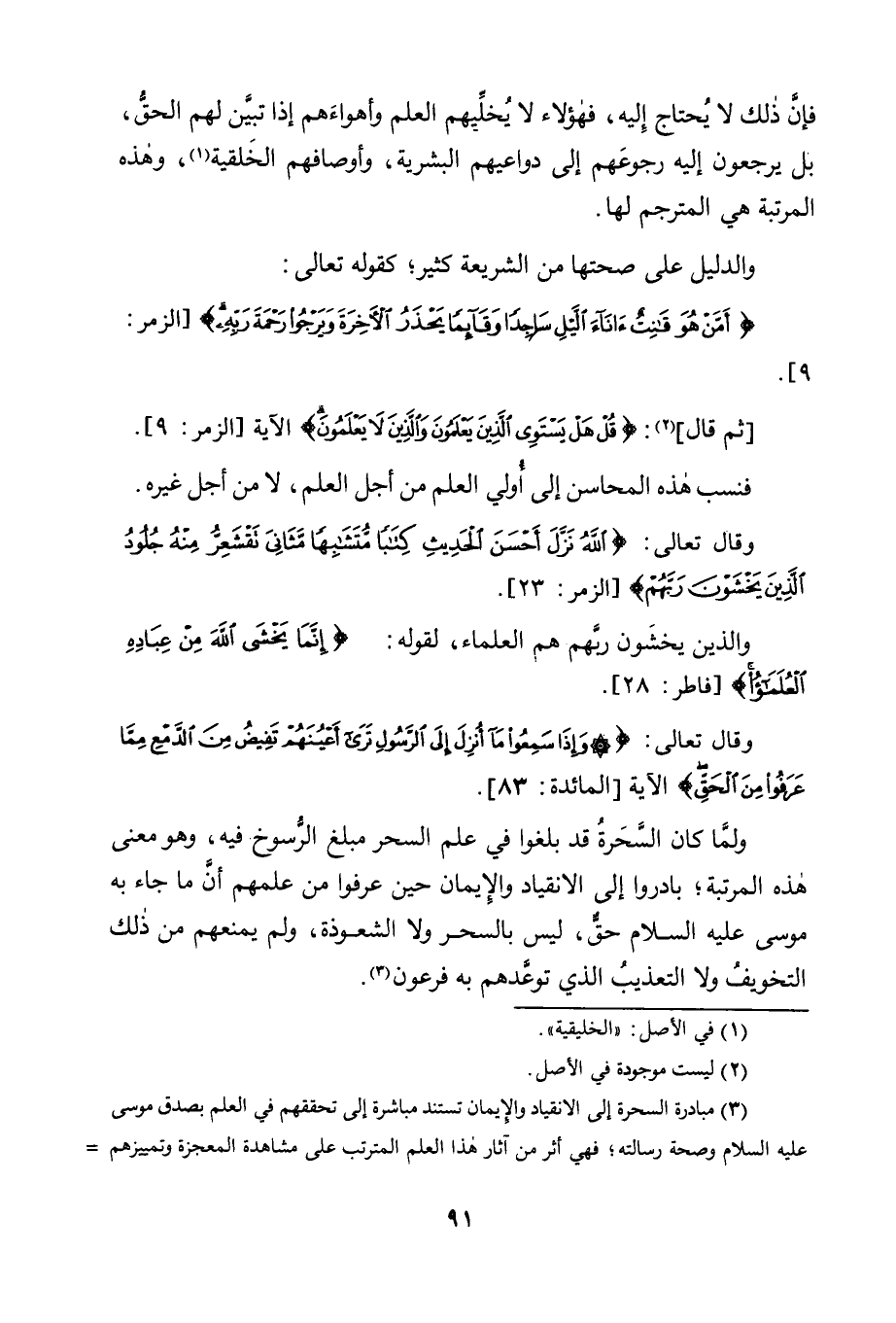 فَإِنَّ ذَلِكَ لَا يُحتاج إِلَيْهِ، فَهَؤُلَاءِ لَا يُخليهم الْعِلْمُ وَأَهْوَاءَهُمْ إِذَا تَبَيَّنَ لَهُمُ الْحَقُّ، بَلْ يَرْجِعُونَ إِلَيْهِ رُجُوعَهُمْ إِلَى دَوَاعِيهِمُ الْبَشَرِيَّةِ، وَأَوْصَافِهِمُ الْخُلُقِيَّةِ1، وَهَذِهِ الْمَرْتَبَةُ هِيَ الْمُتَرْجَمُ لَهَا.